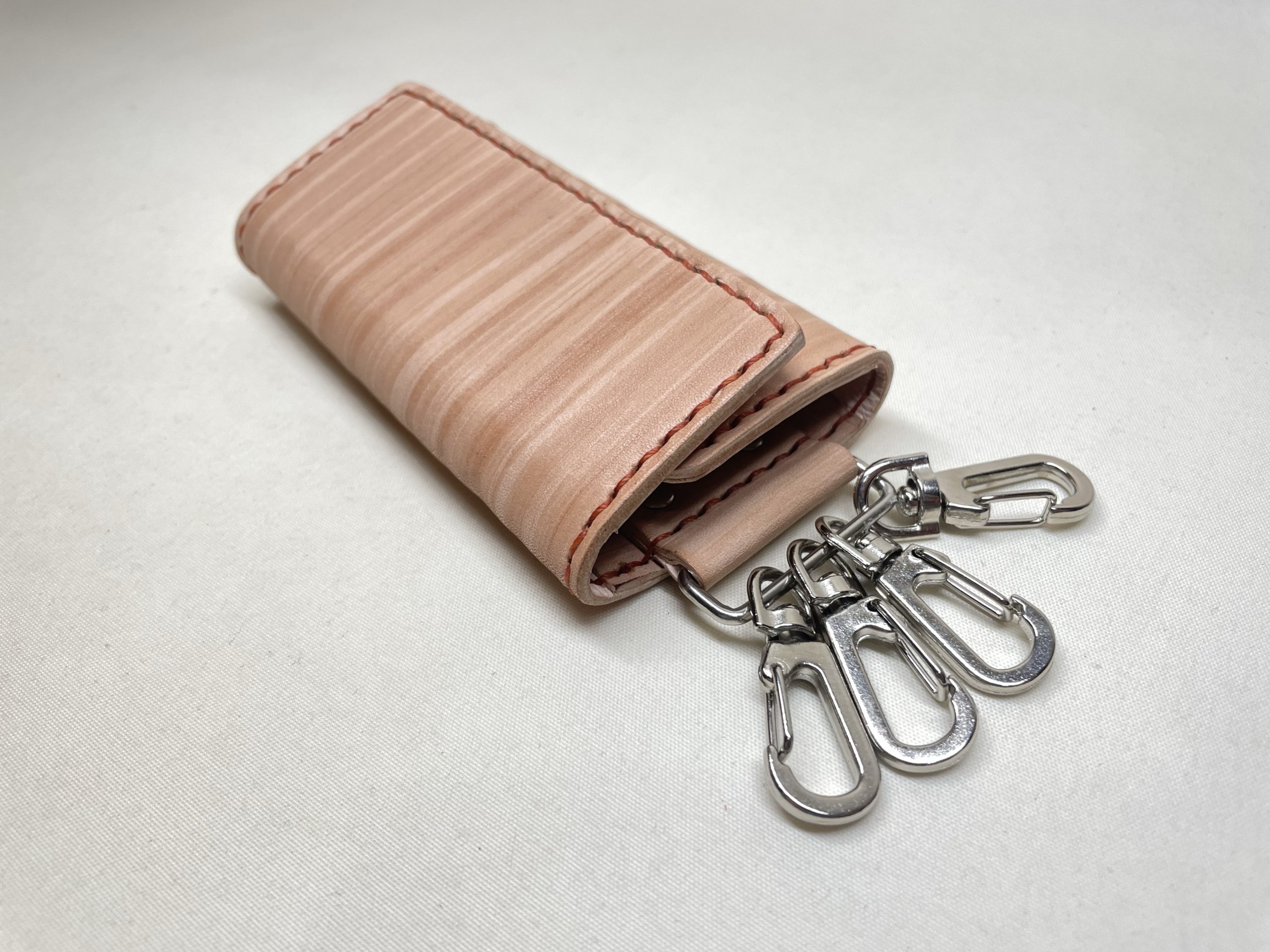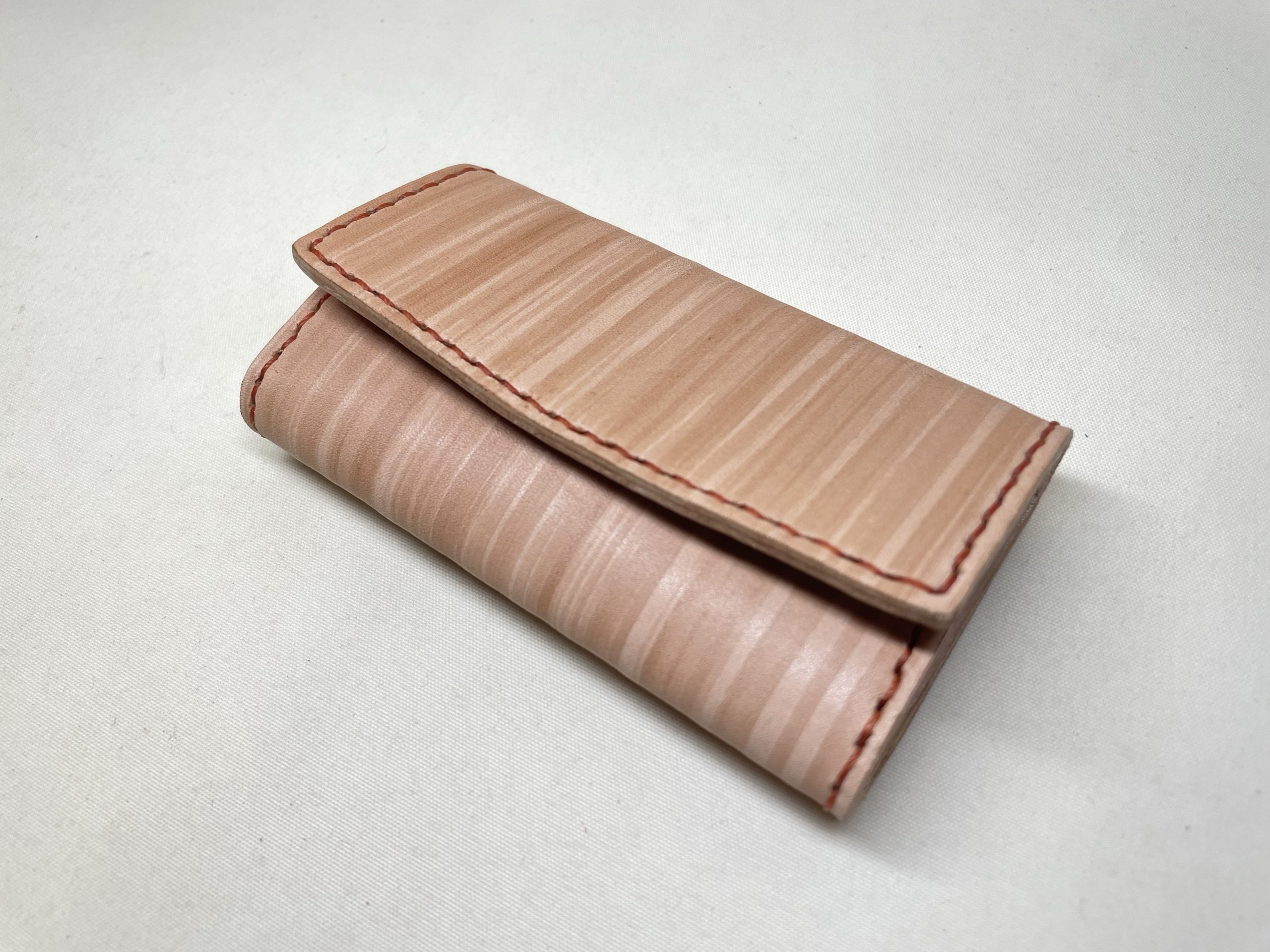 木目の様にする為に、染料を私が刷毛で塗った革で作った三つ折りのキーケースです😊