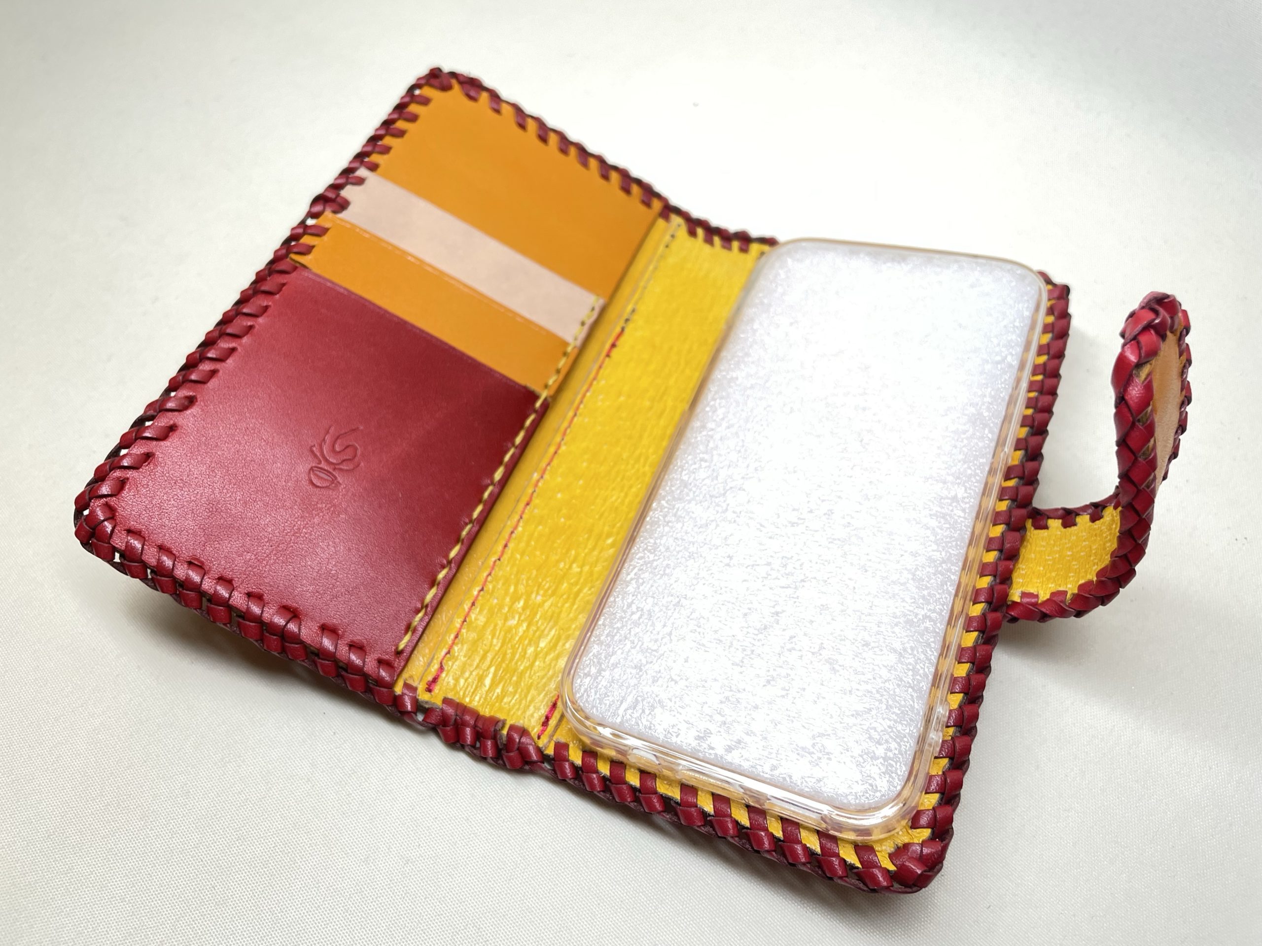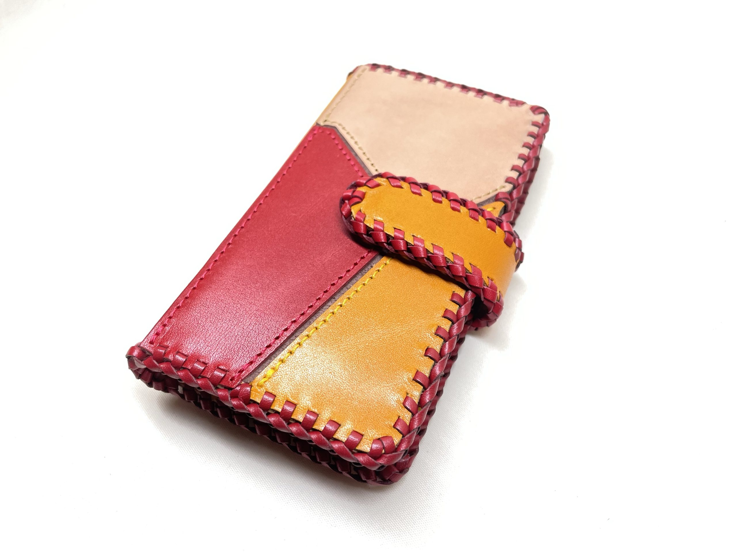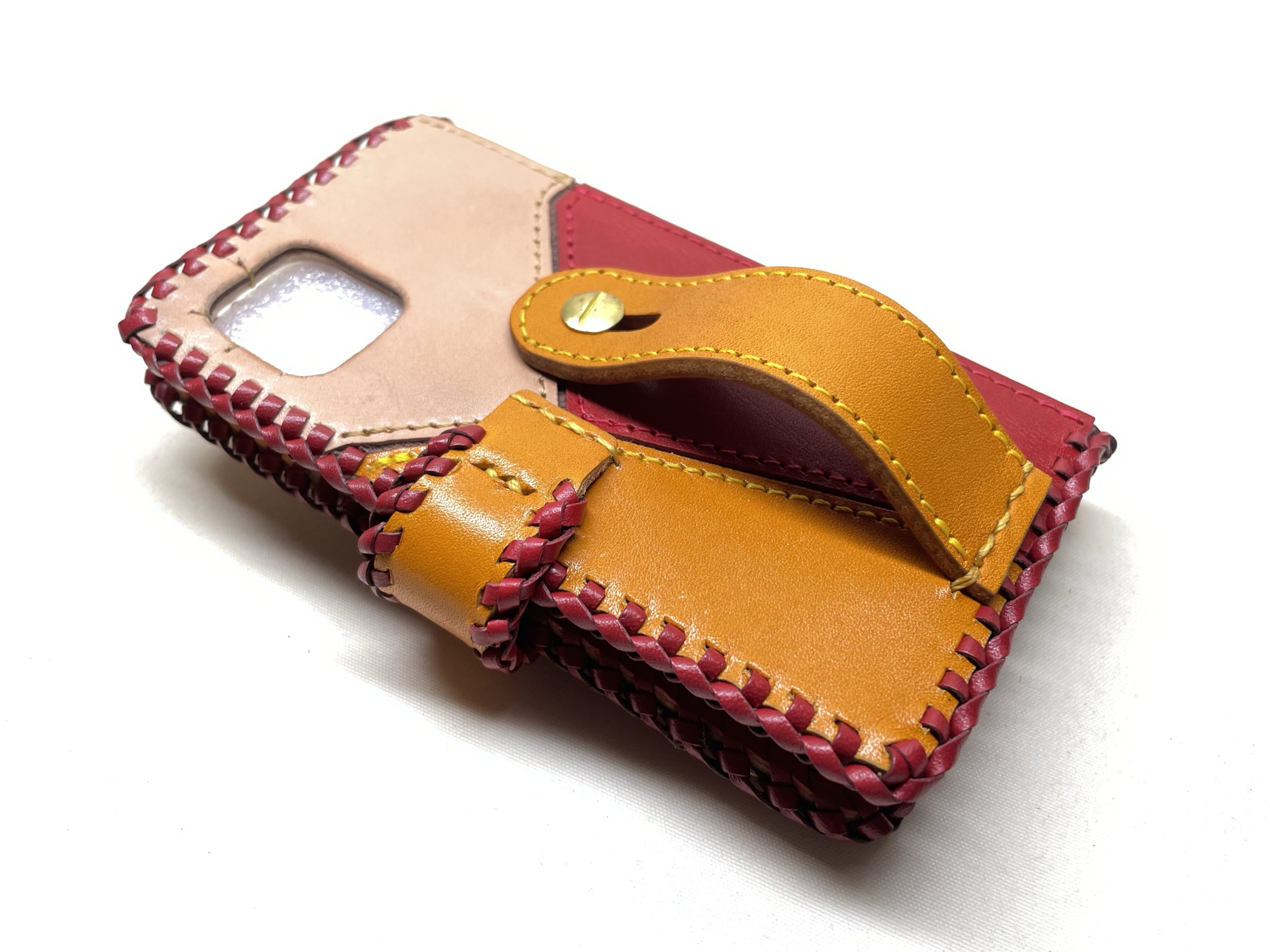 ヌメ革のiPhoneケース 創作革小物/スマホケース 2022.10.18 お客様のデザインのパッチワークとレースのかがりでオーダー頂いたiPhoneケースです☺️操作する時にとても安定するグリップも背面お付けしました☺️ いつもご注文頂きましてありがとうごさいます!YouTubeの方に製作ビデオもありますのでご興味のある方はご視聴下さい!