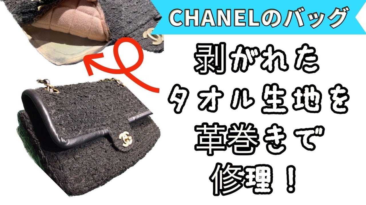 CHANELのバッグ!「お直し」より「お治し」で生き返らせました!CHANELの剝がれてしまったタオル地のバッグを革巻きで修理!