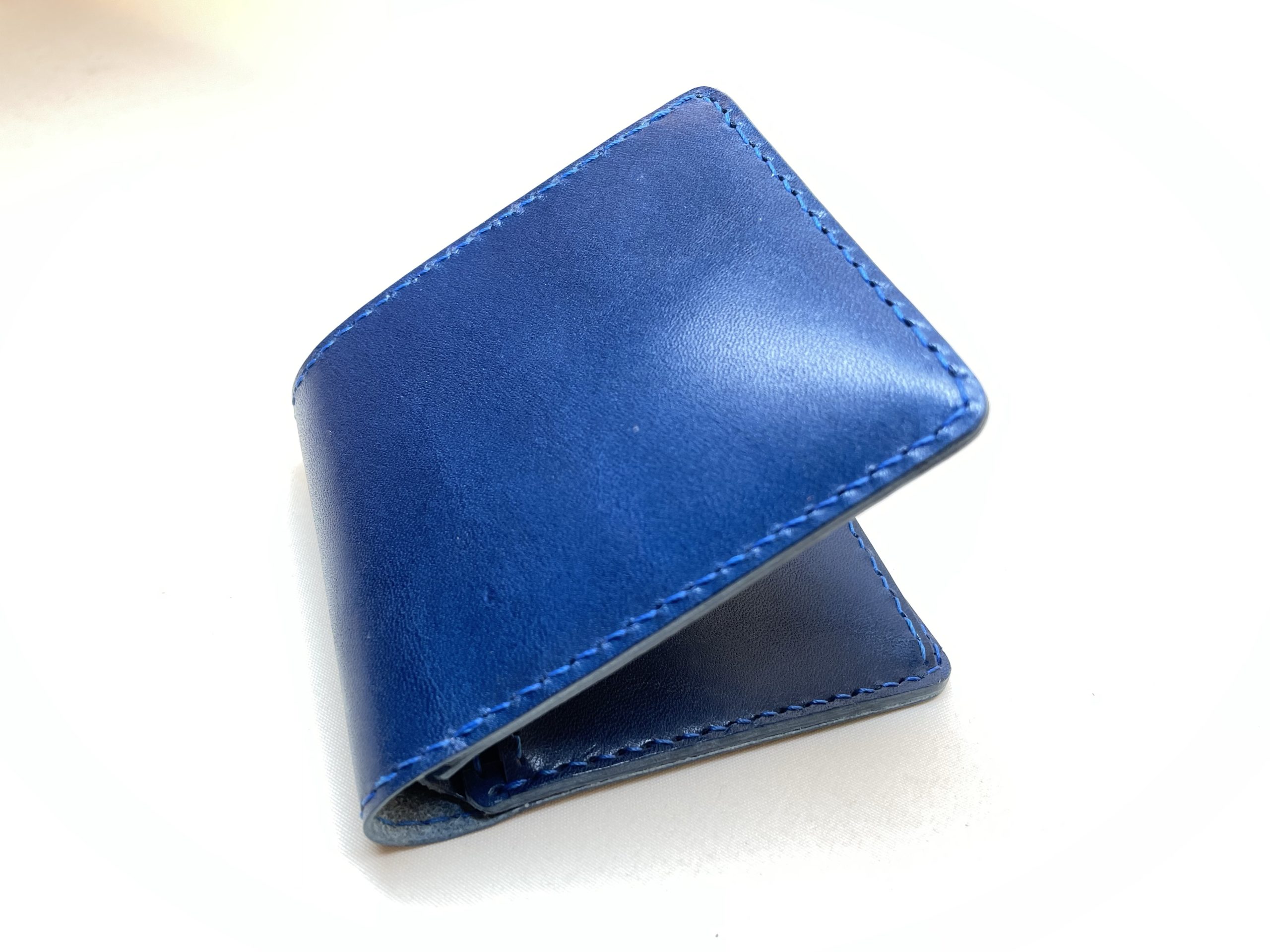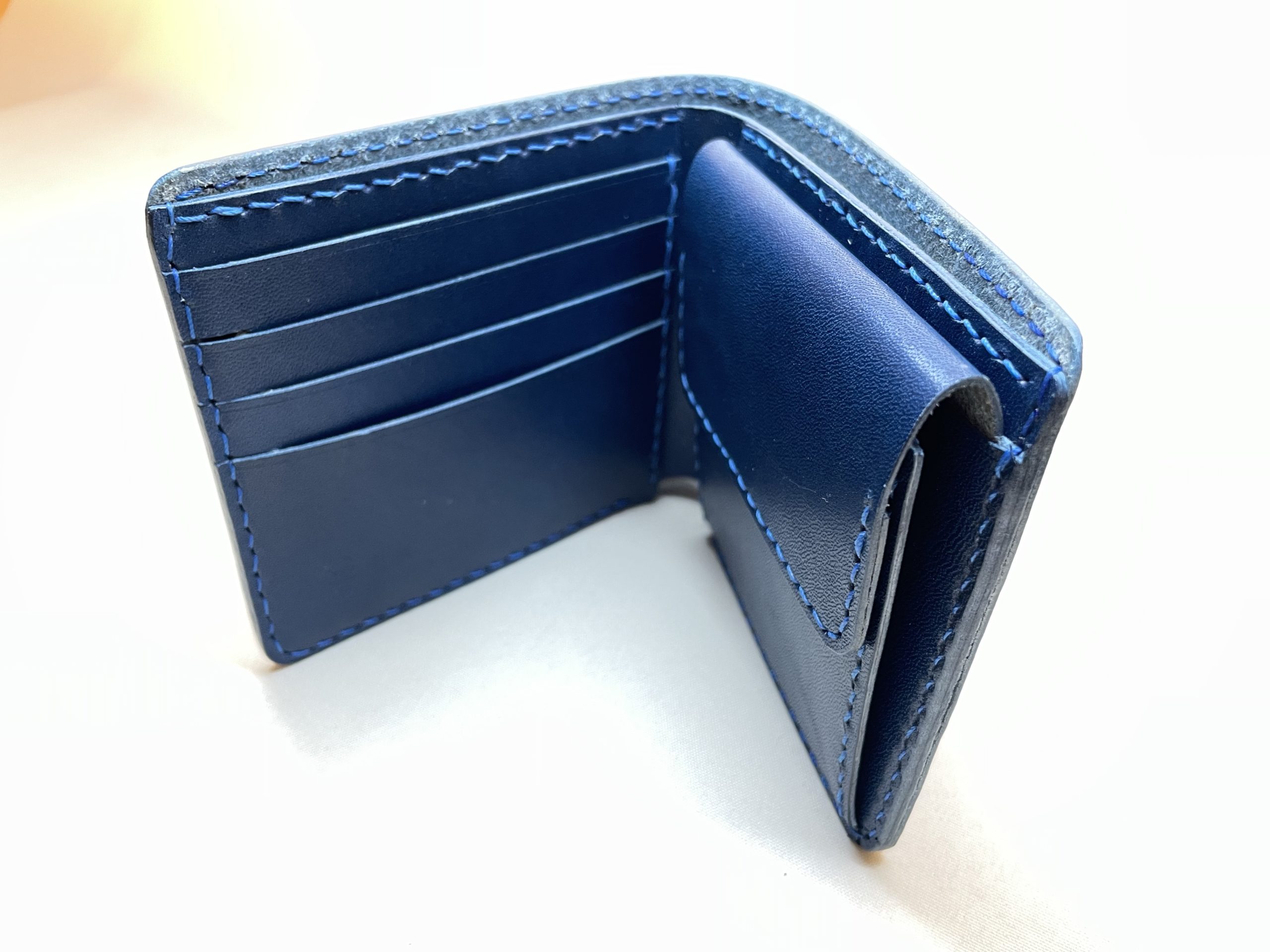 ネイビー色のヌメ革の二つ折り財布です☺️
