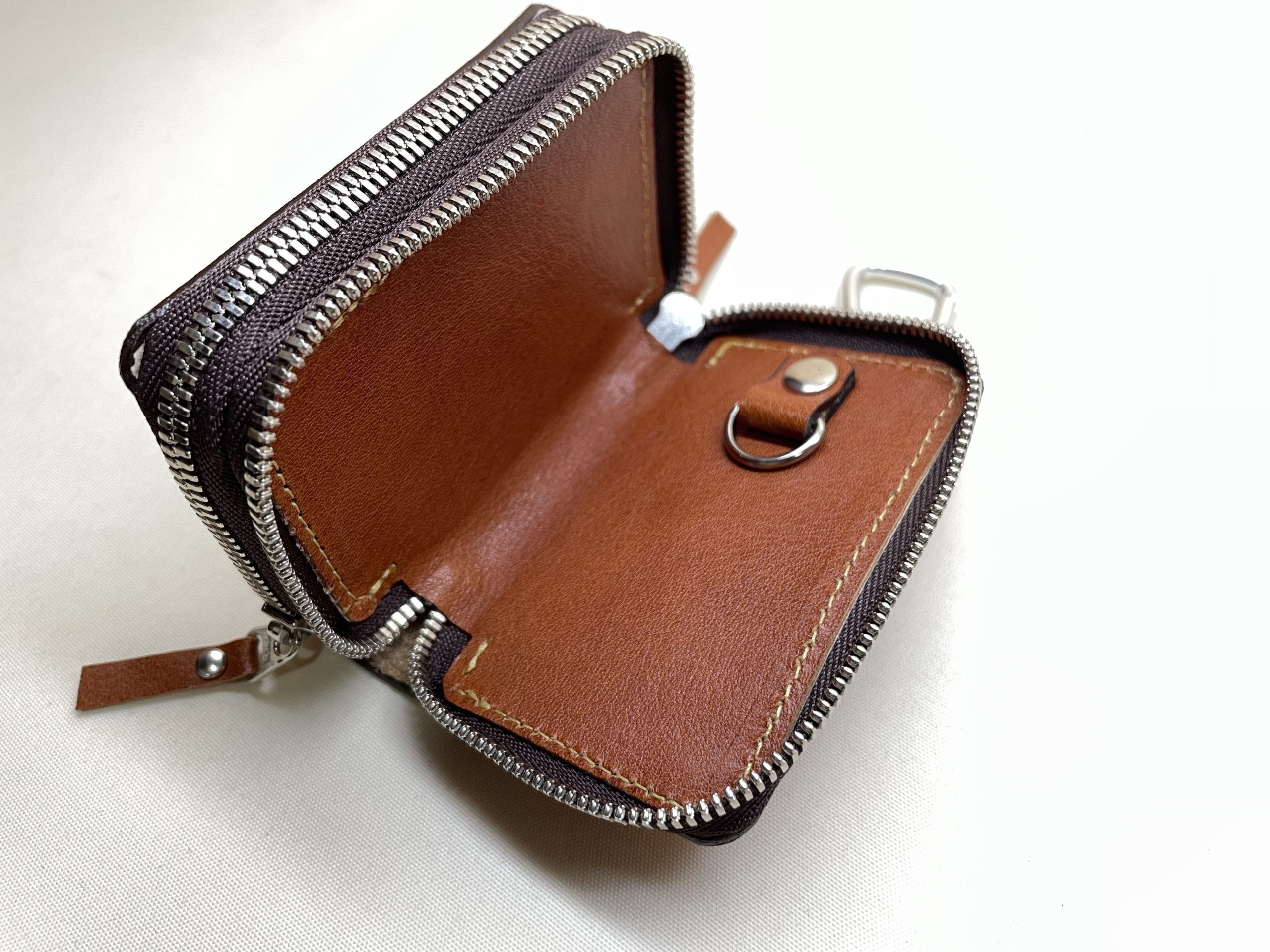 ダブルファスナー仕上げのキーケース
