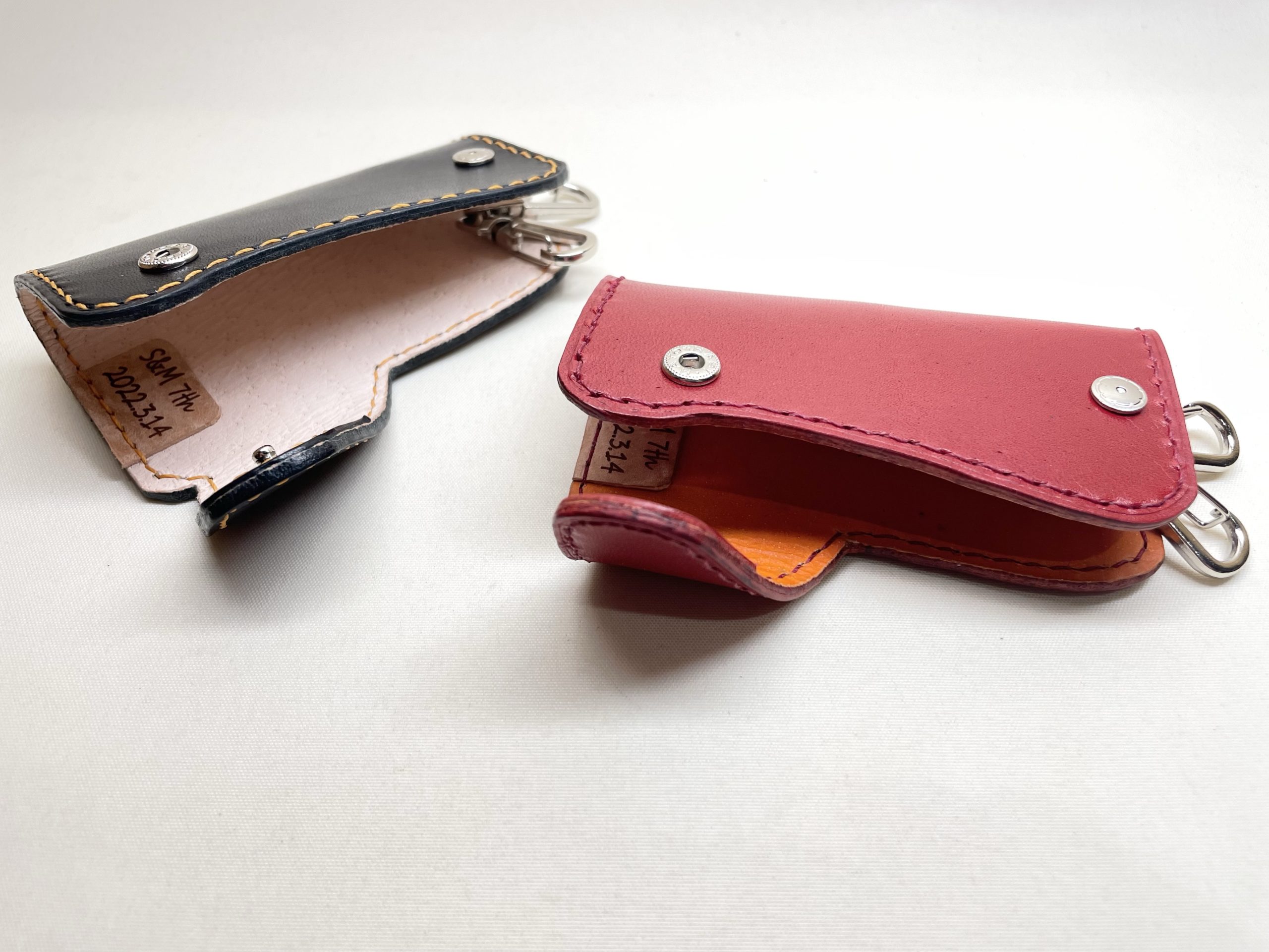 アニバーサリーなペアのスライドキーケース 創作革小物/スマホケース 2023.02.19 当店定番商品の鍵をスライドして出し入れできるキーケースをペアでご注文頂きました☺️コンパクトなのでとても使いやすいキーケースです!イニシャルとアニバーサリー日付を刻印したタグをさりげなくお付けして、特別なキーケースに仕上がりました!