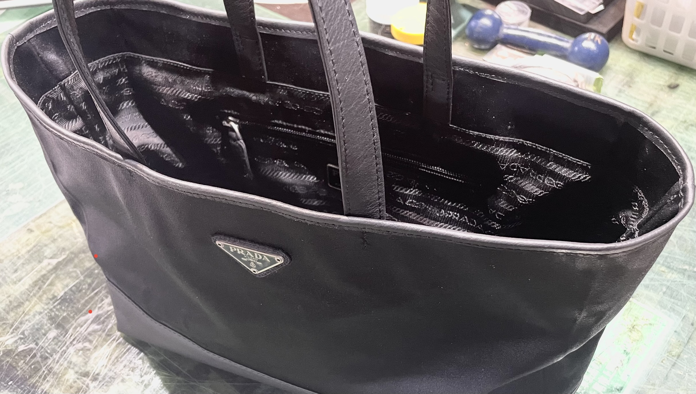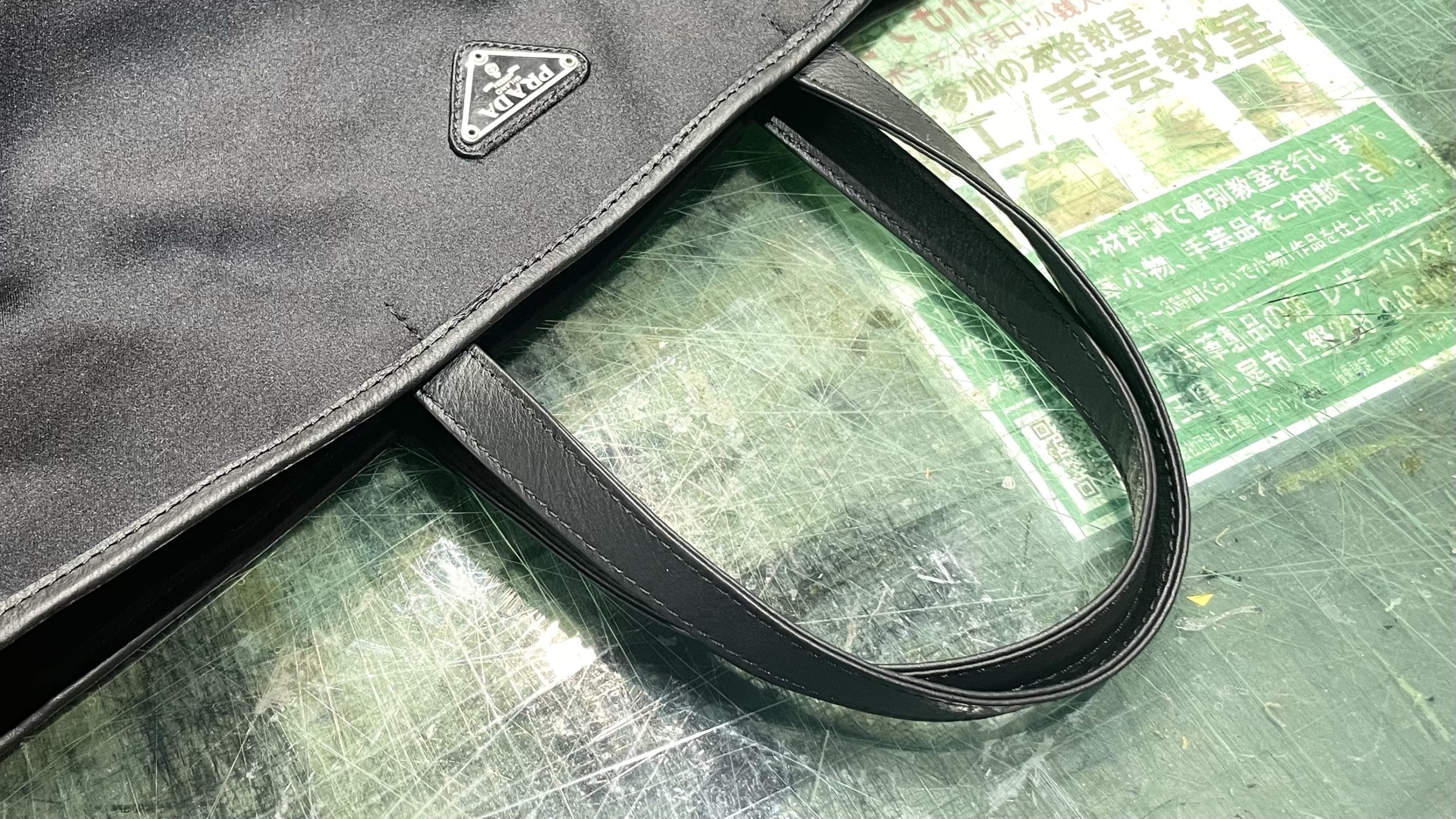 布生地バッグの修理です バッグ/ワーク・シザー 2023.04.15 持ち手と角の部分が擦れてしまったバッグに新しい革を使って修理しました☺️解体して修理しますので、1からバッグを作るのと同じ手順で進めます手間暇はかかりますが、また長くお疲い頂けます!