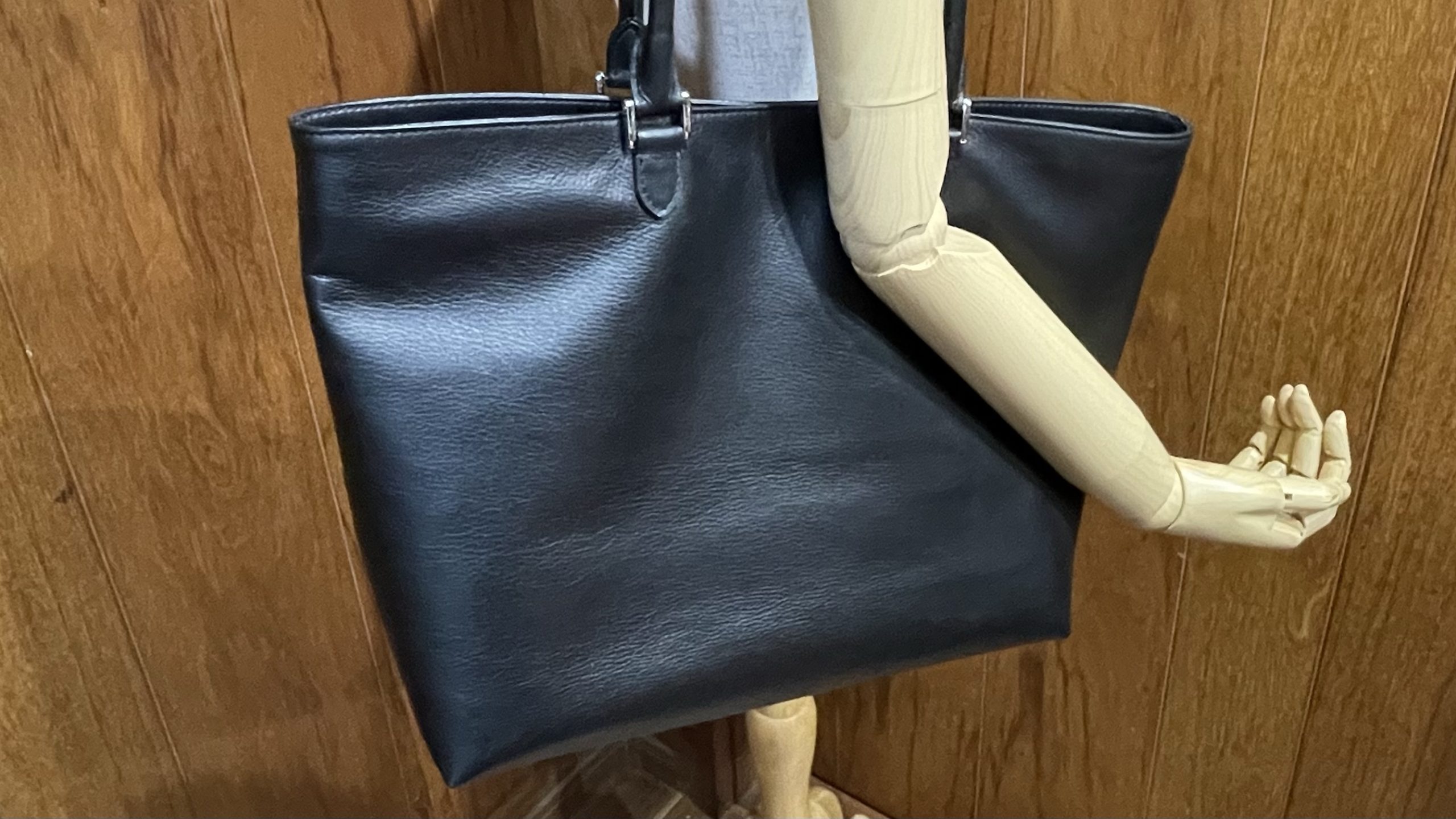 くたっと柔らかい革のトートバッグ バッグ/ワーク・シザー 2023.04.23 A4バインダーもそのまま収納できるトートバッグのご注文を頂きました☺️使っていくうちにくたっとして欲しいとのご要望で高級感あるシボ付きソフト牛革に丸ハンドルで仕上げました芯材も柔らかめにしております全て黒で統一し、高級感ある仕上がりになりました☺️