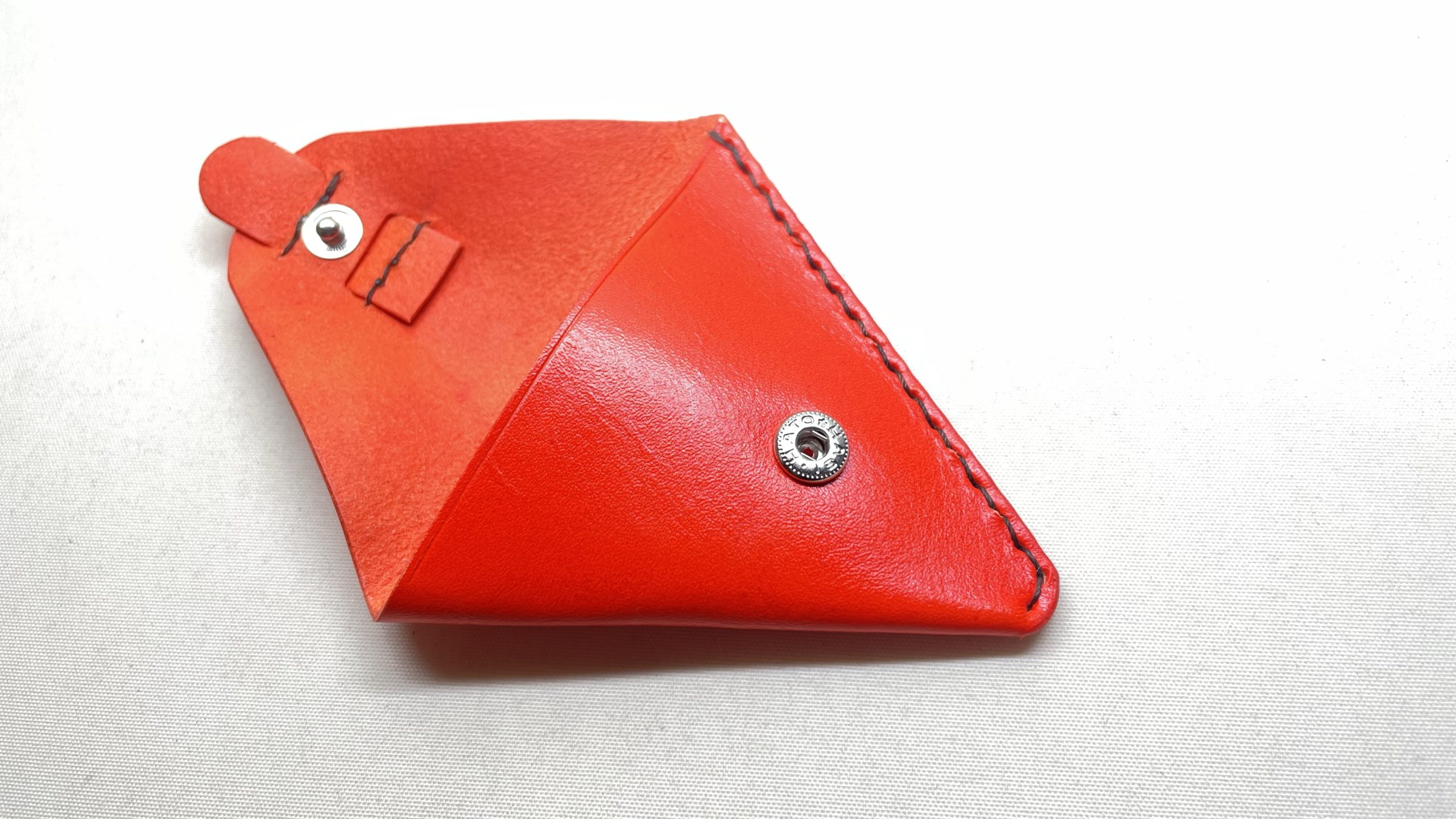 自家染めならではの鮮やかに! 創作革小物/スマホケース 2023.05.11 当店での自家染めヌメ革を使った革製の折りたたみ鏡と三角小銭入れのご注文を頂きました☺️どこよりも鮮やかなオレンジ色に私が染めてます😆ヌメ革は水分を含むと乾いた時に硬くなってしまうので、何度も何度も絶妙に硬くならない様に塗り、全く染めムラのない様に仕上げます☺️