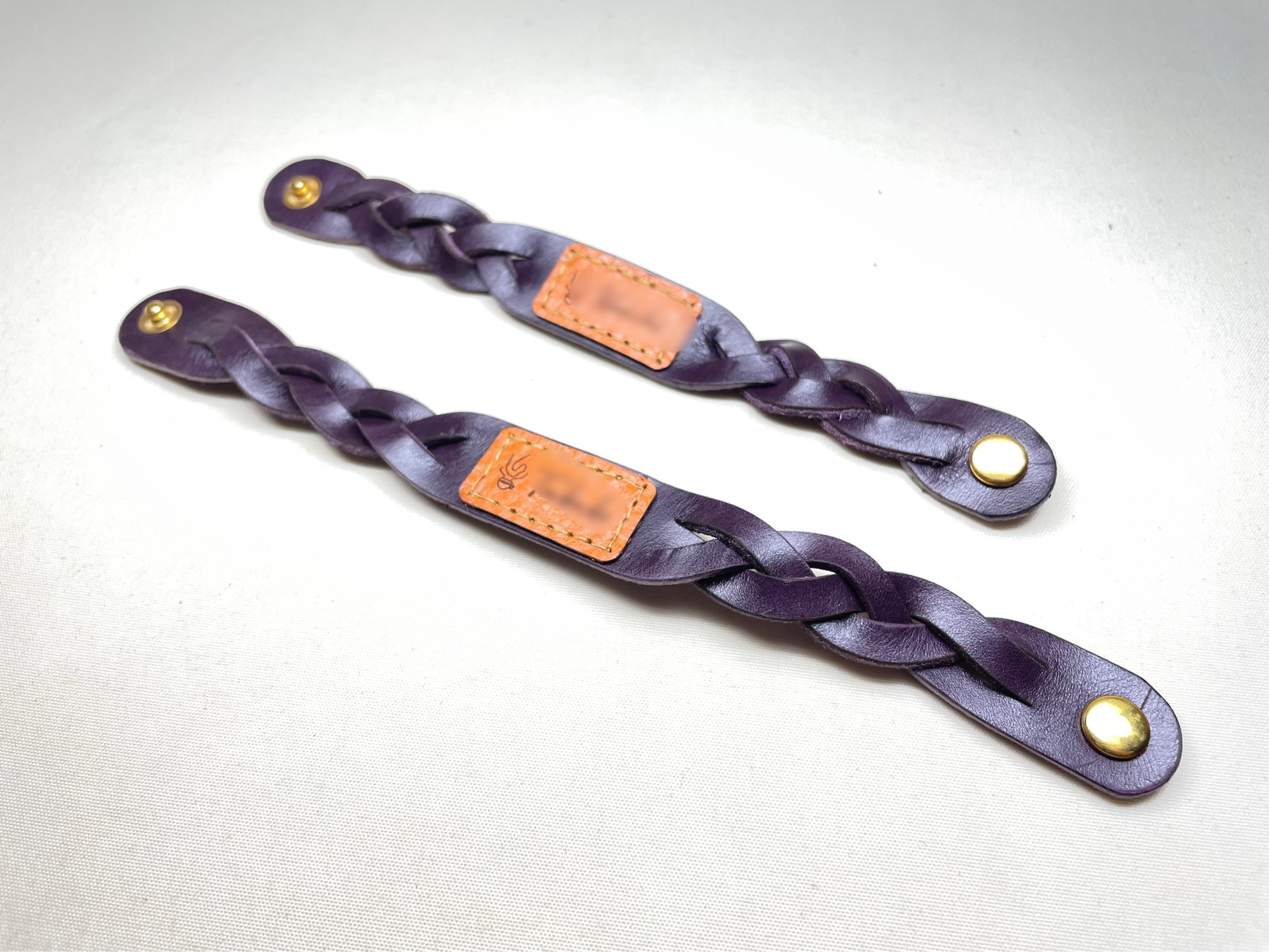 ヌメ革のペアのブレスレット 創作革小物/スマホケース 2023.05.18 ヌメ革の編み込みブレスレットのご注文を頂きました☺️ ネームを入れた革のプレートを中央に縫いつけました! 大切な人とのペアのブレスレットはとても価値のあるアクセサリーだと思います! ヌメ革ですので驚く程長くお使い頂けますよ!