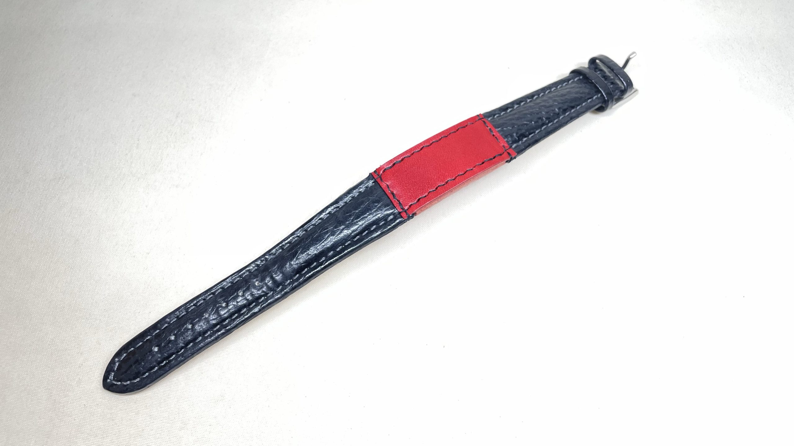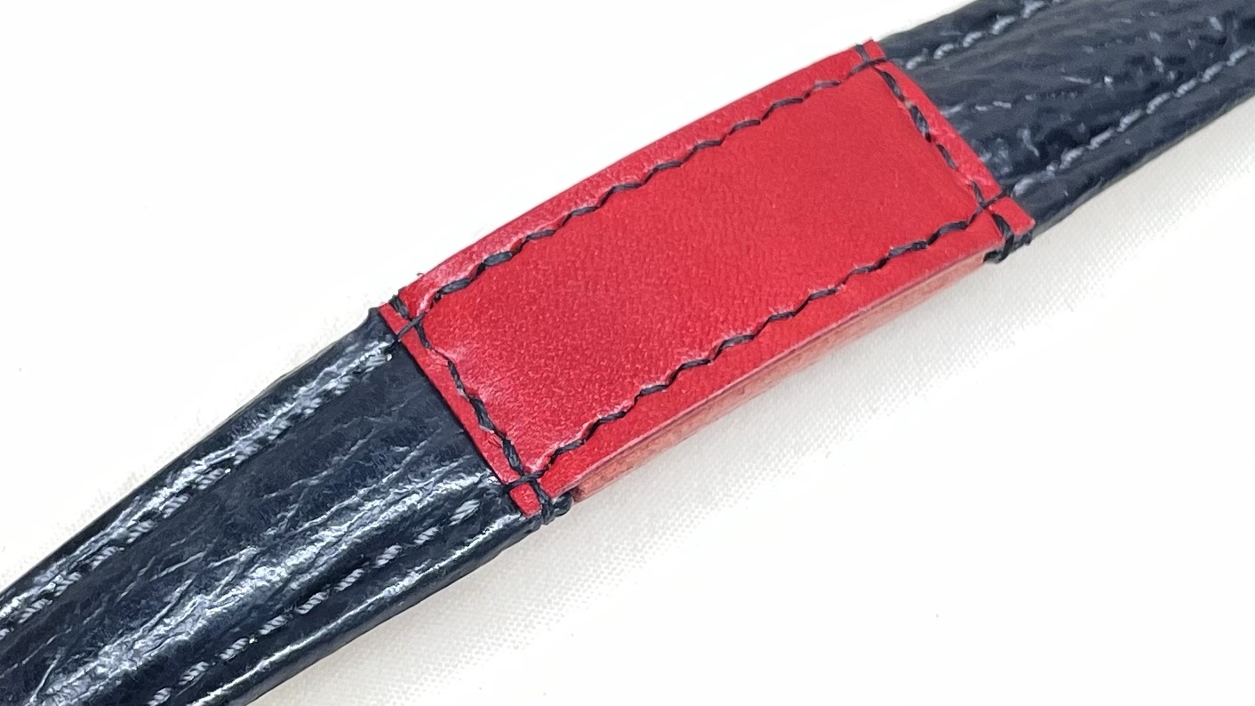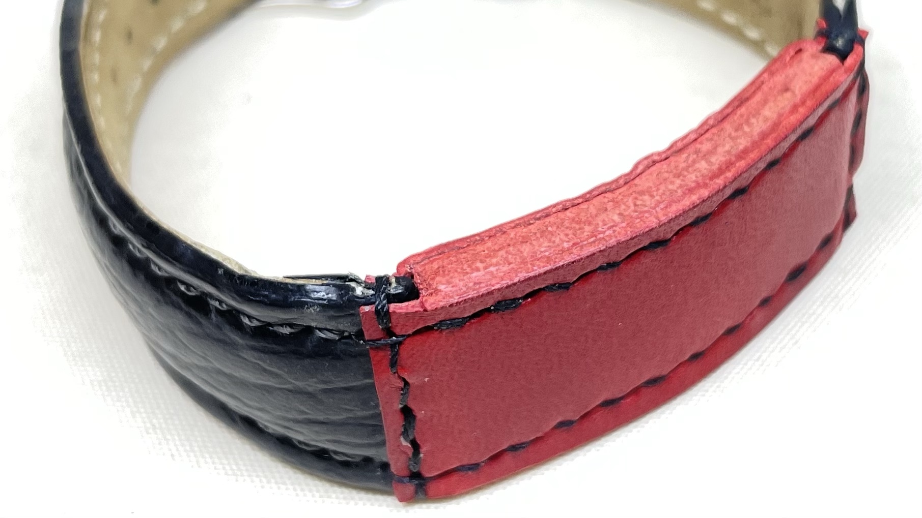 時計があった部分には、赤の差し色革を加え、段差もなくなるよう仕上げております!