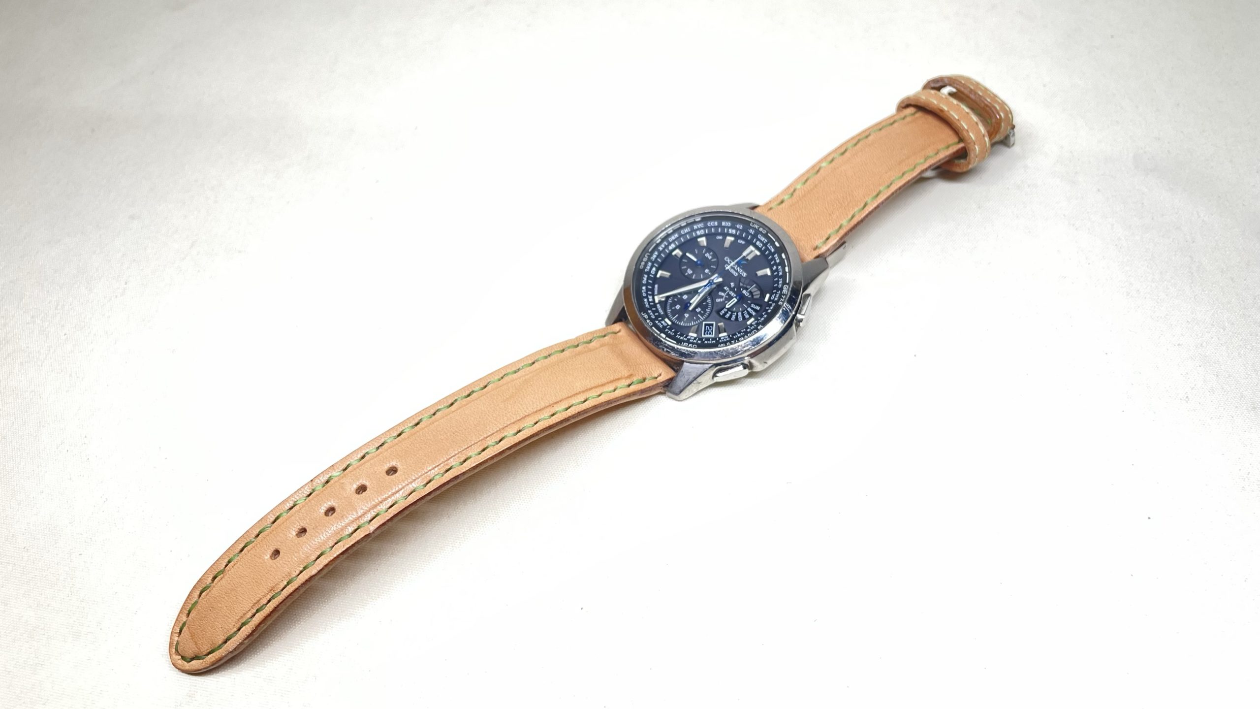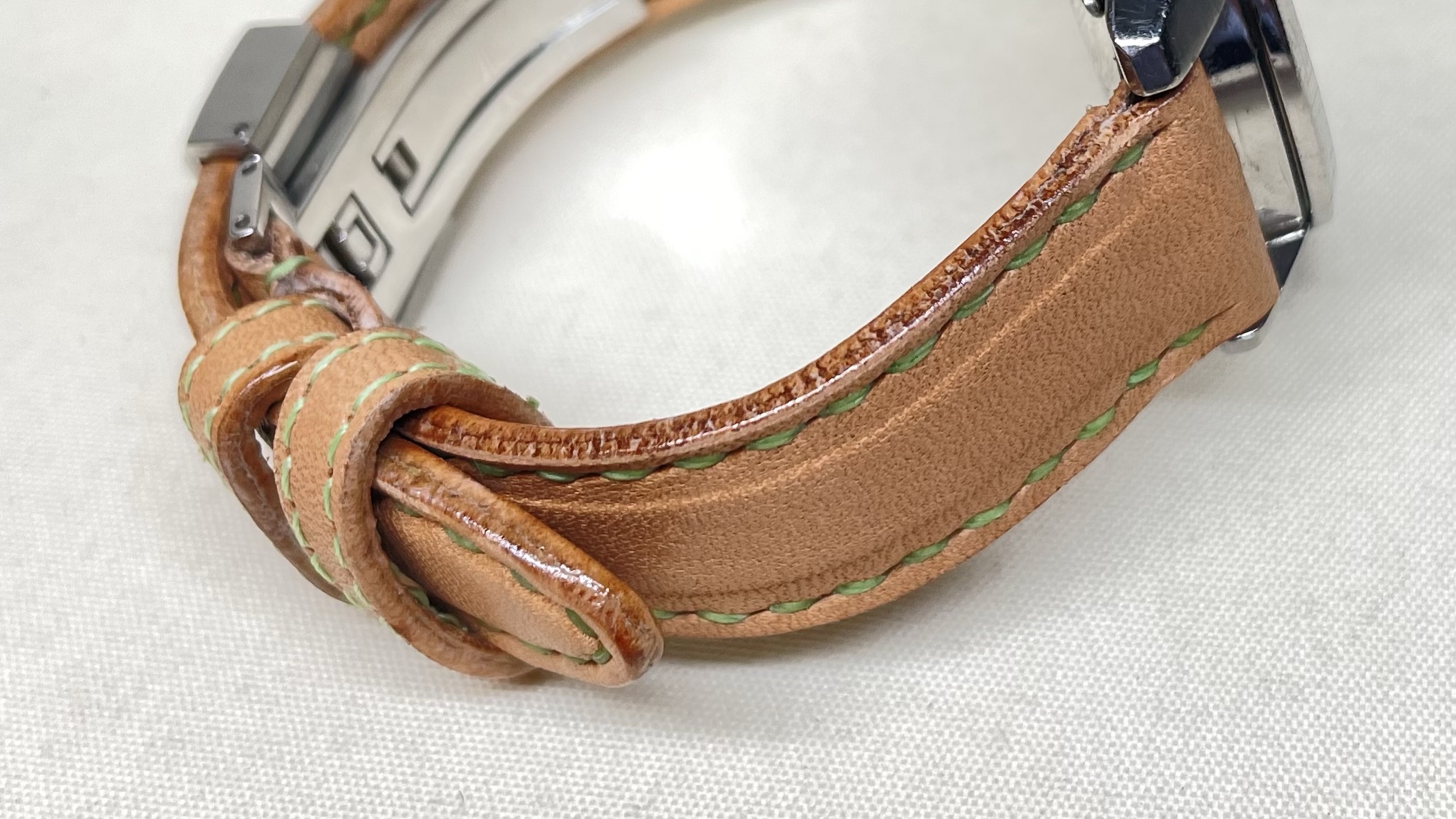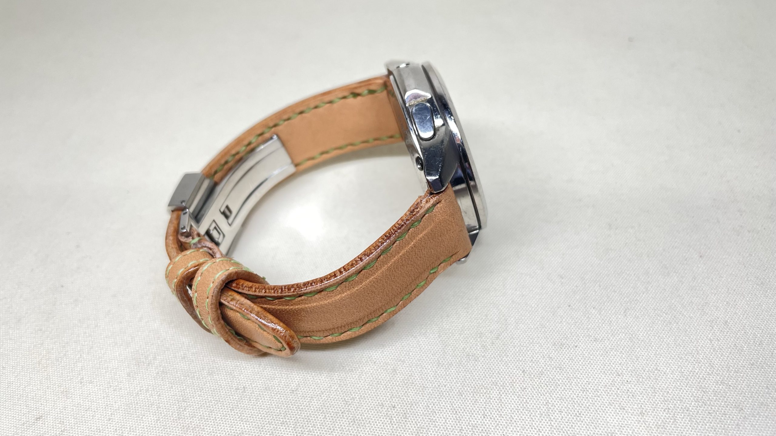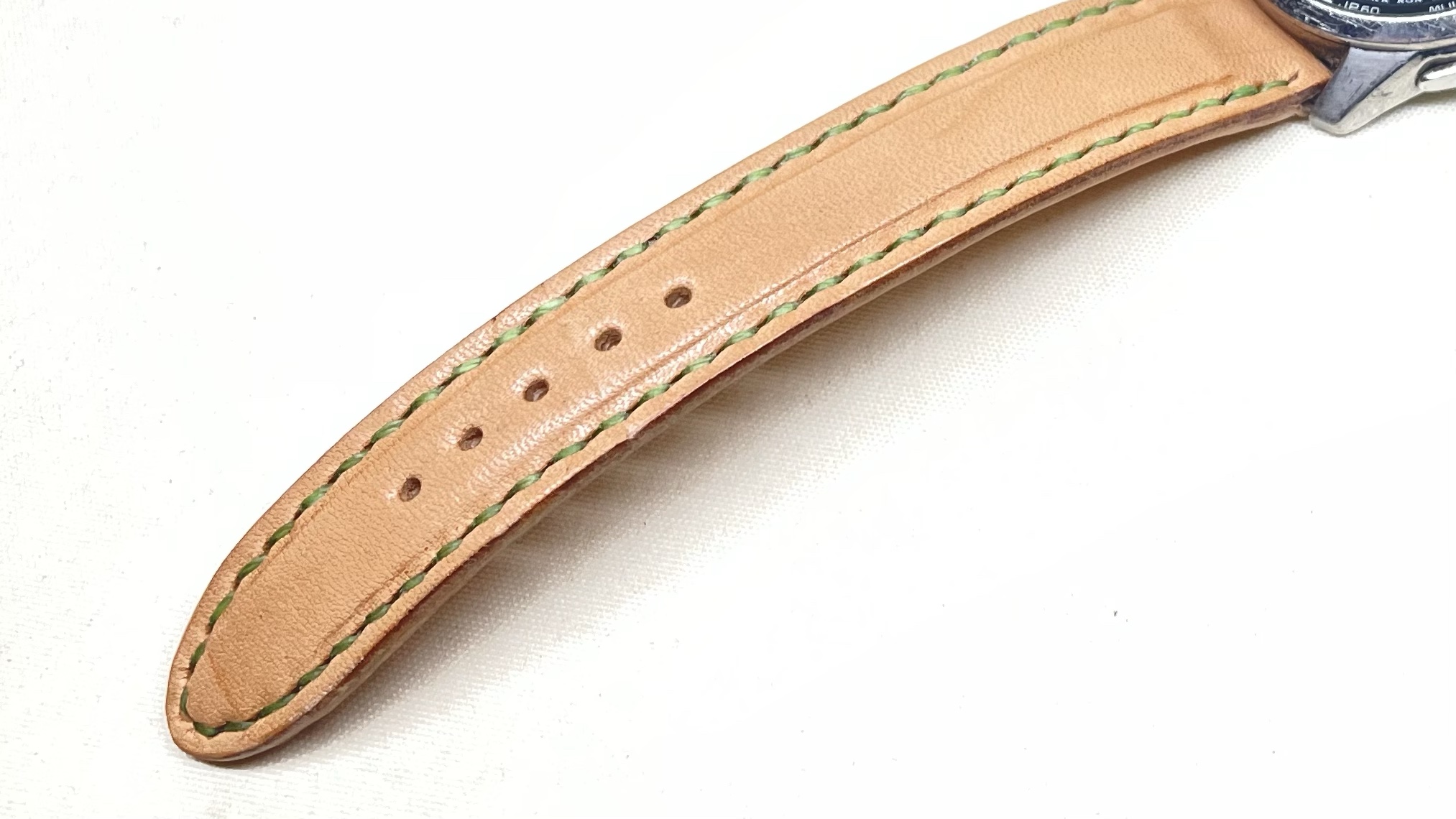 オールヌメ革の時計バンド 創作革小物/スマホケース 2023.07.30 オールヌメ革の時計バンドです☺️味わい深いバンドを希望され、私たちにご注文くださいました。肉盛りという独特な段差をつけております味わい深いバンドで、時計もさらに魅力的に「スタイリッシュな時計に、肉盛りの彩りを」ご愛顧いただき、心から感謝申し上げます☺️