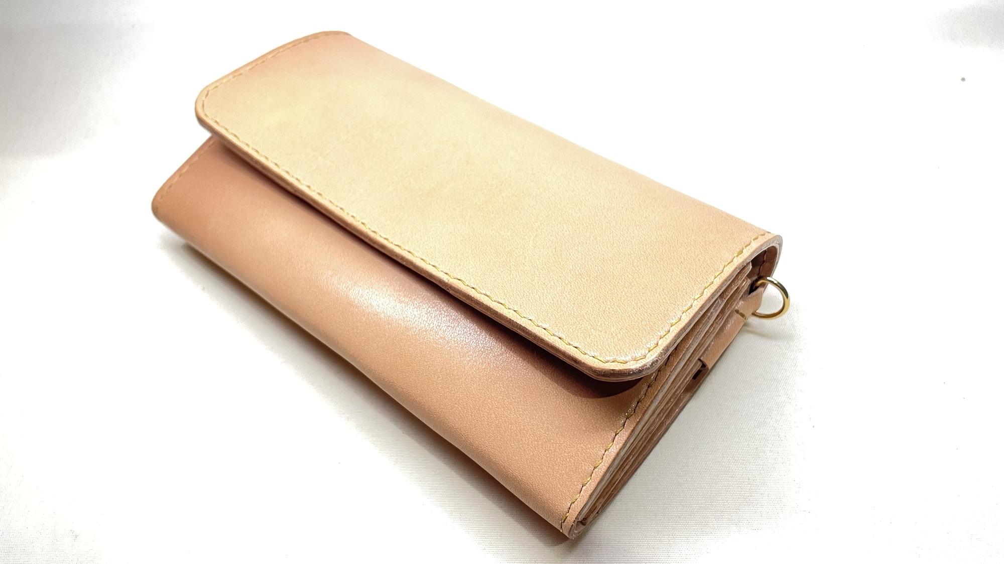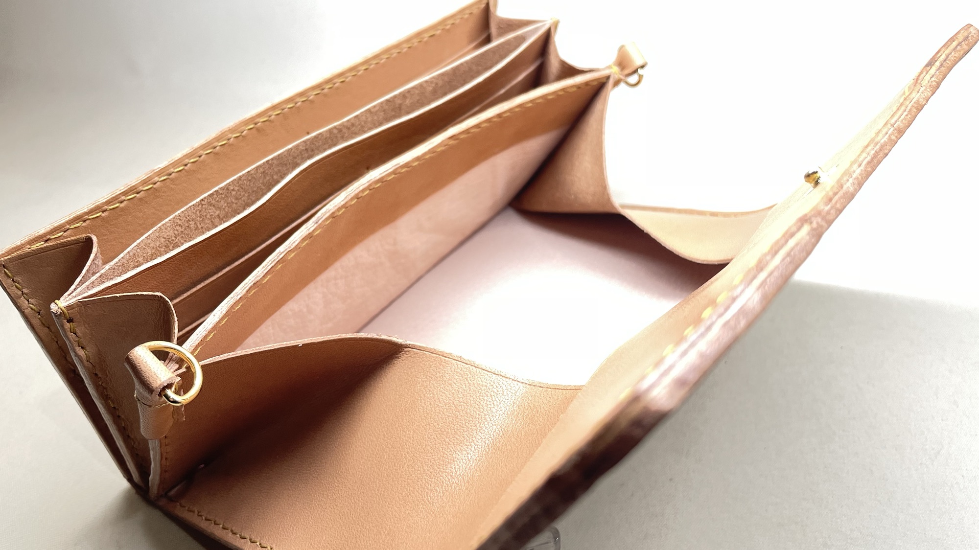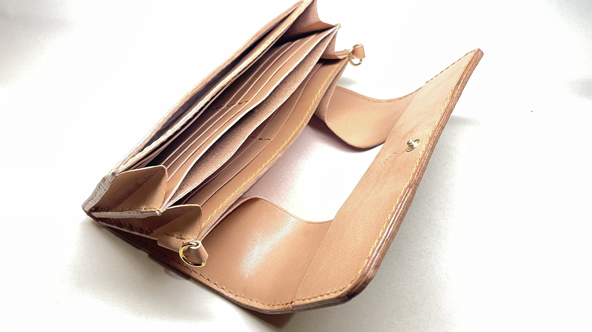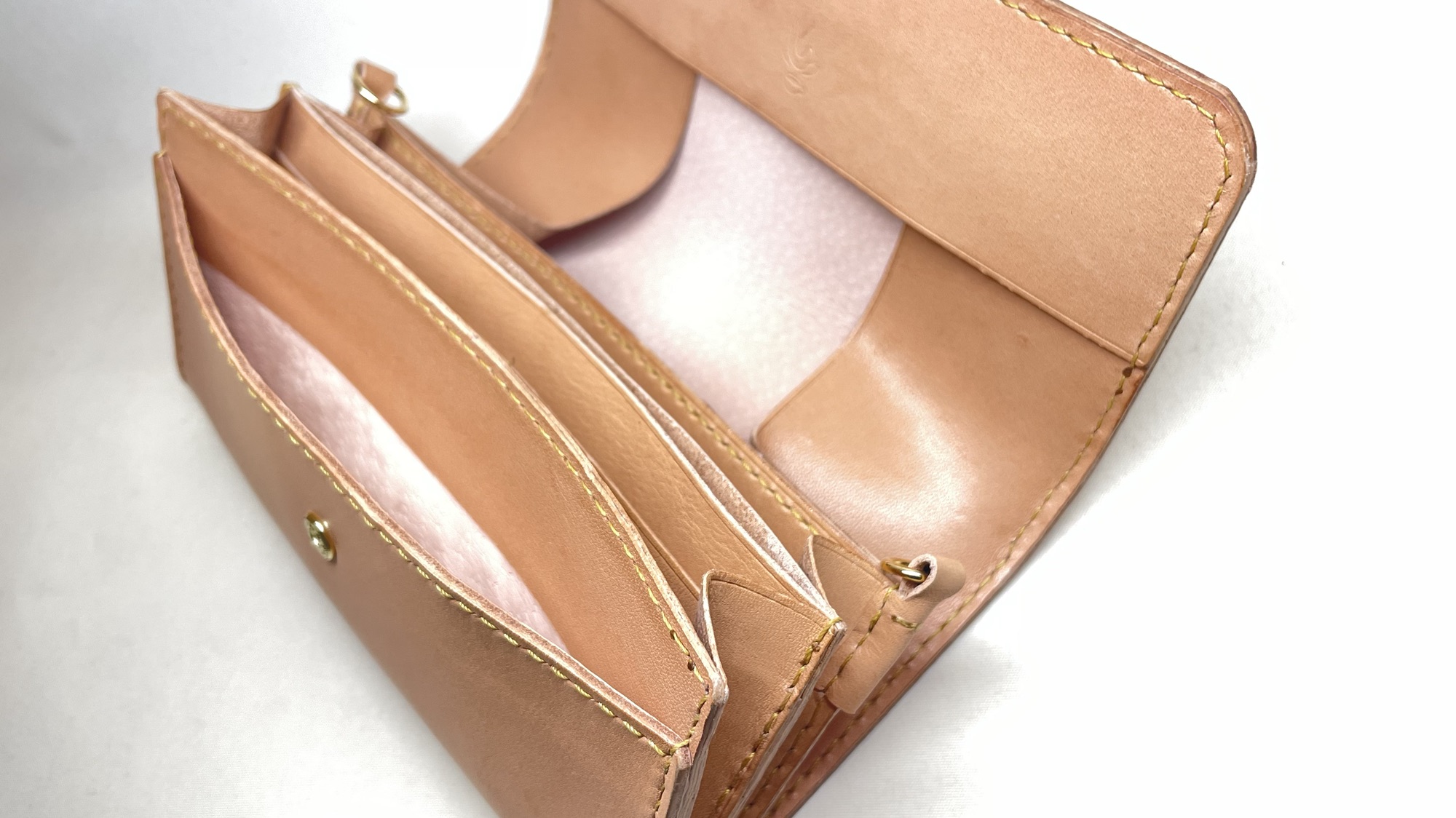 ショルダーストラップが取り付けられ、小さなバッグのような大容量のかぶせ財布に仕上がりました!