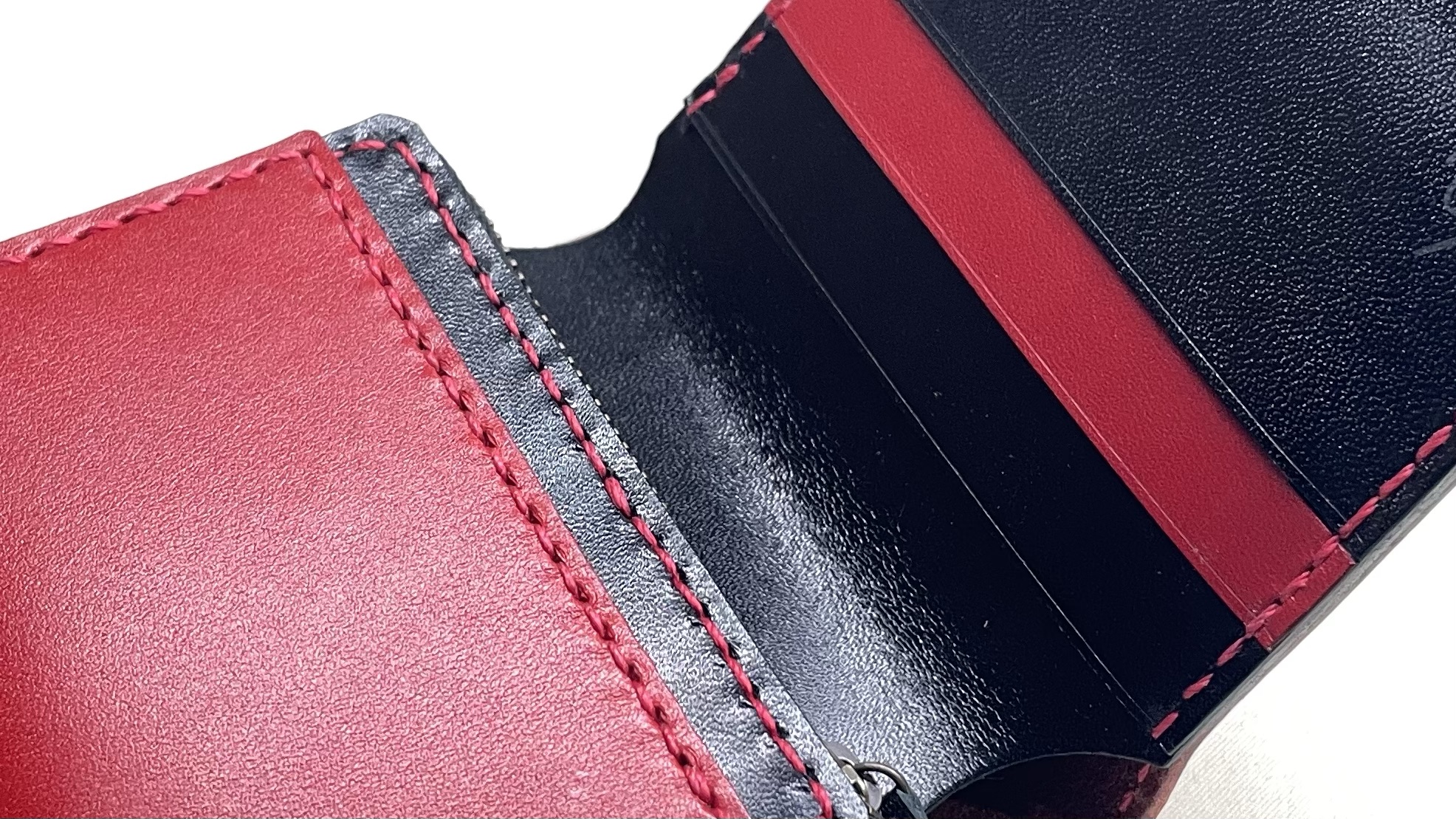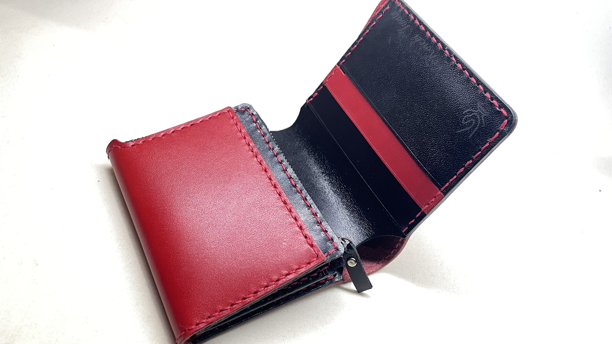 コンパクトながら15枚程のカードが重ねて収納できる専用のポケットがある当店オリジナルの二つ折り財布です☺️