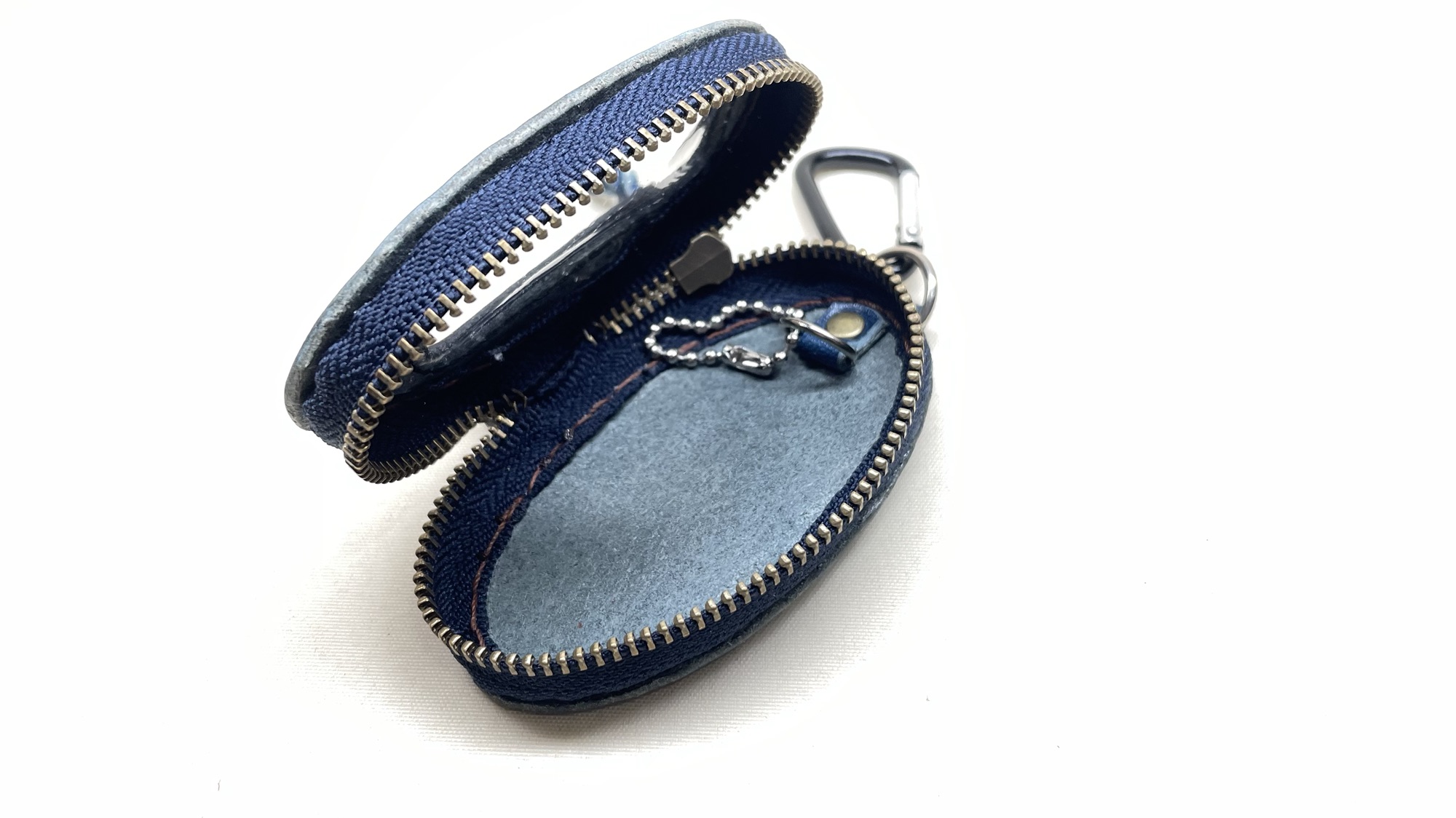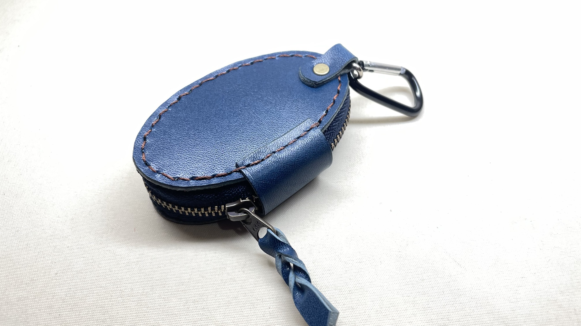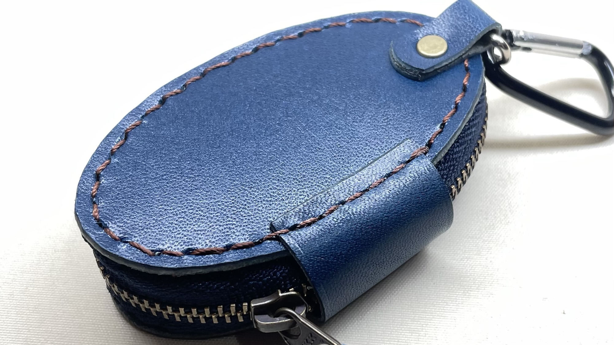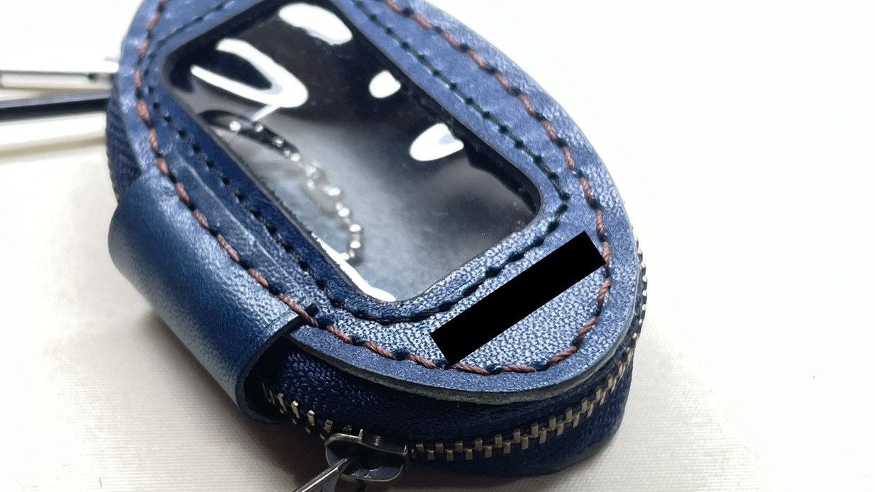 車のスマートキーケース 創作革小物/スマホケース 2024.03.16 ファスナーで収納できる車のキーケースのご注文を頂きました!前回プレゼント用にオーダーを頂いたのですが、気に入って頂けまして今回はお客様の自分用にとリピートです☺️この楕円型は作るのにコツがいるので少し難しいのです!ネームも樹脂窓ギリギリに小さく入れるたので、かなり技術も要りましたが無事に完成しました☺️