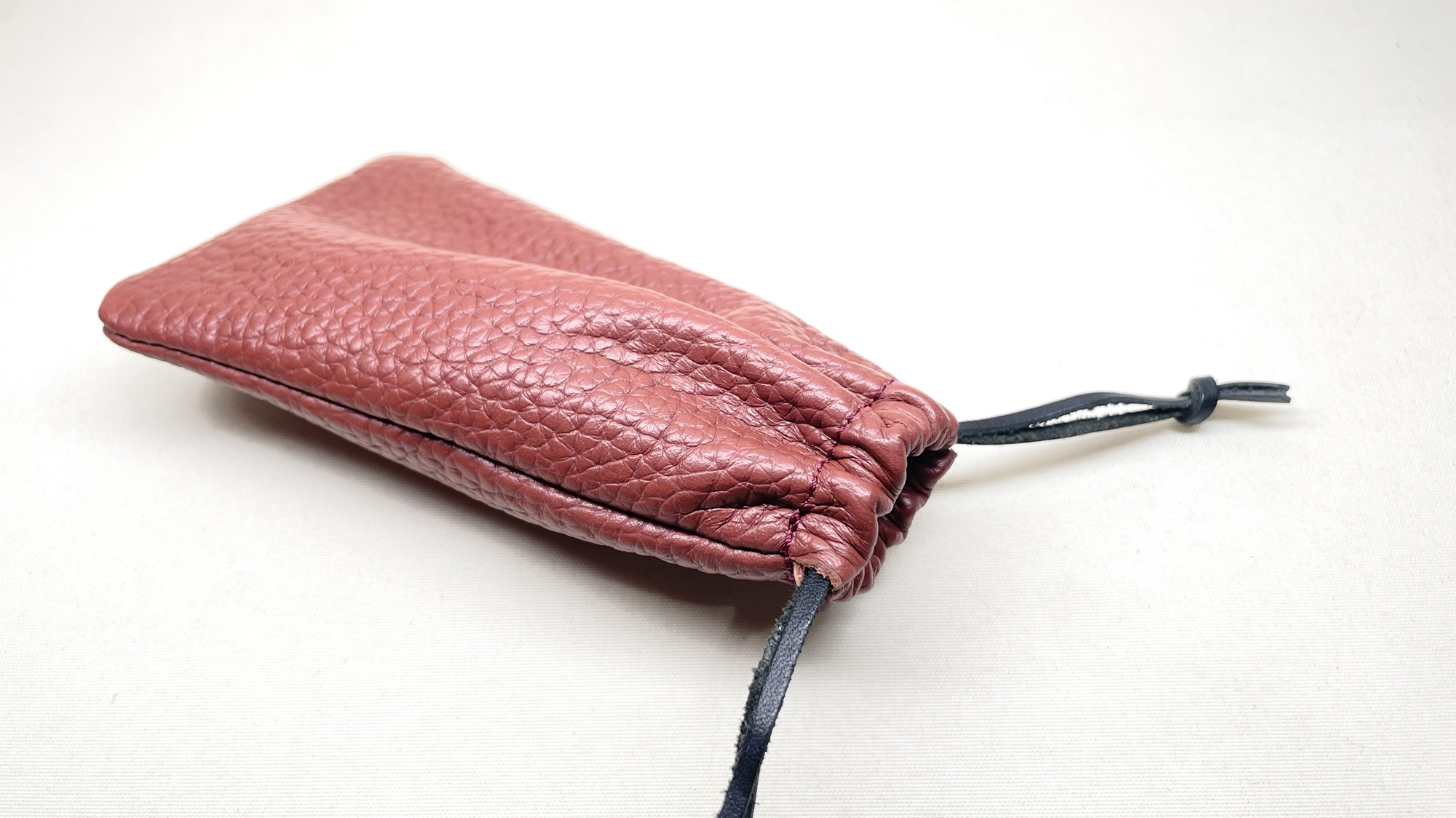巾着のハンコケース 創作革小物/スマホケース 2024.08.07 細長い巾着でお作りしたこのケースはハンコケースです😉できる限り予算を抑えるオーダーでしたが、しっかりと内縫いで作りましたので、底の方まで自由にマチが動きます!多少大きさが変わっても収納できます口元も革紐を使っておりますよ☺️