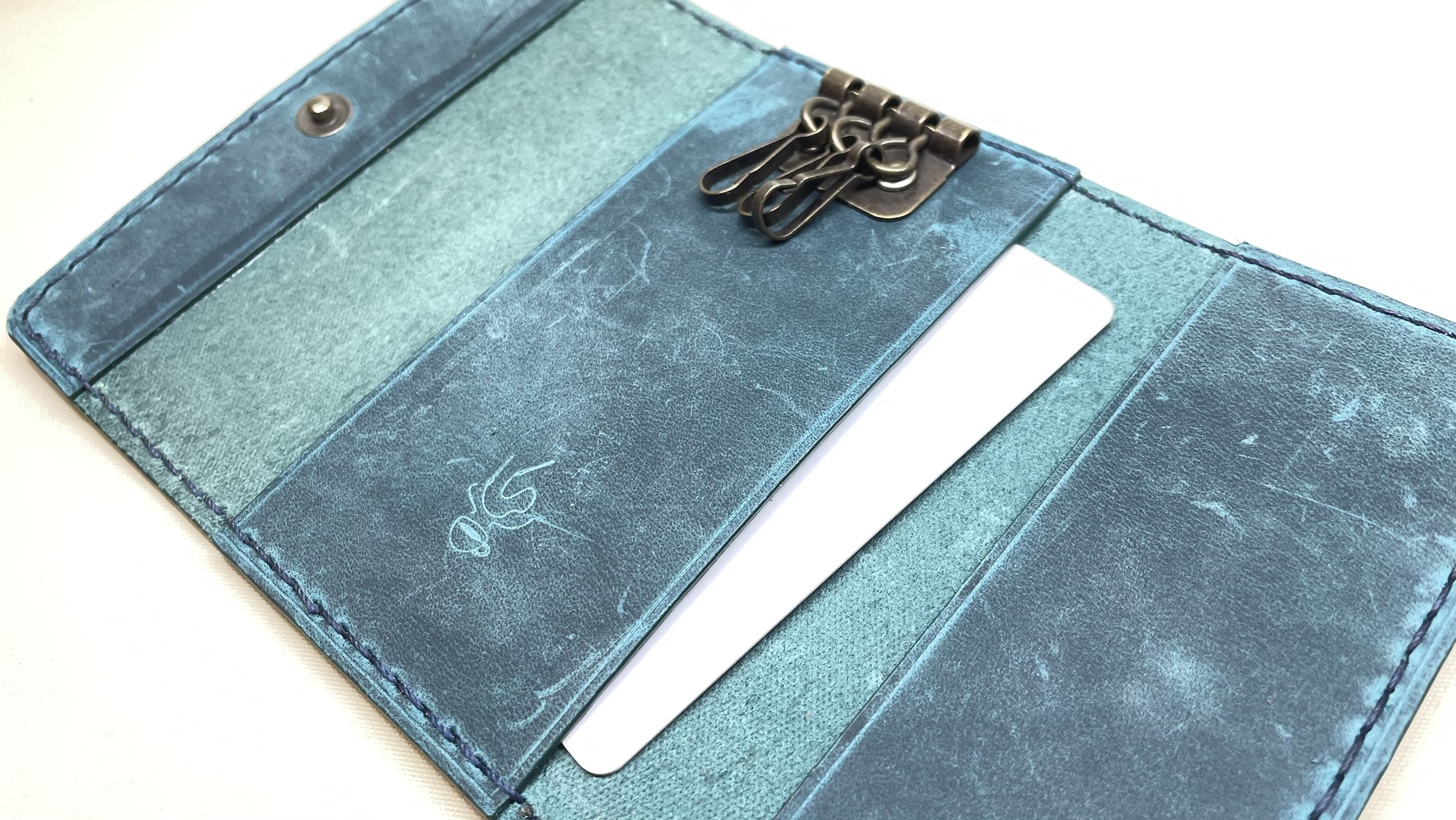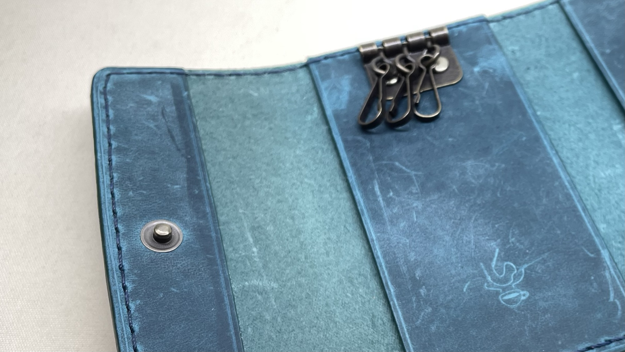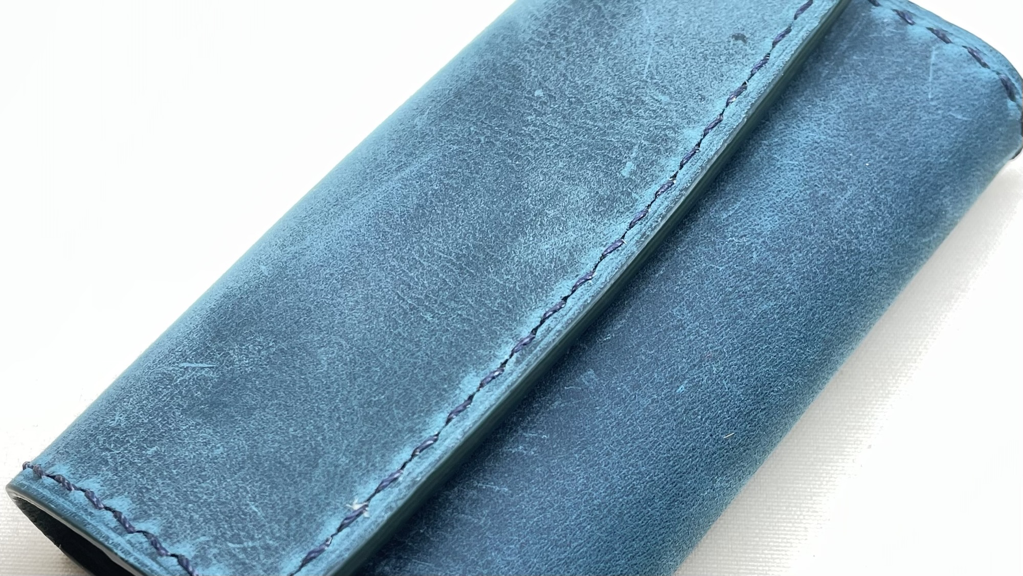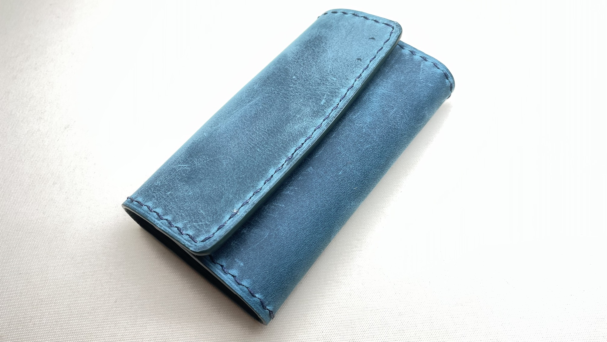 プルアップとヌバックと言ういい所取りをしているレザーを使用したキーケース 創作革小物/スマホケース 2024.12.15 プルアップとヌバックと言ういい所取りをしているレザーを使用したキーケースです! 結構柔らかめのレザーなので鍵を包み込むように収納します! このレザーは表面にバフをかけているものの経年変化はゆるやかなので綺麗なムラ色が長く保てますね