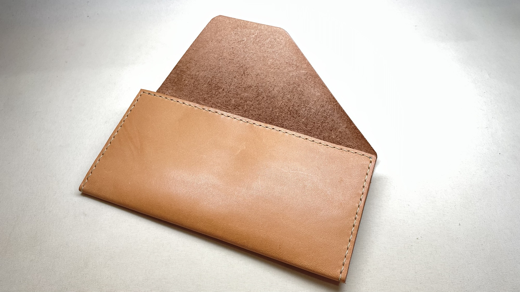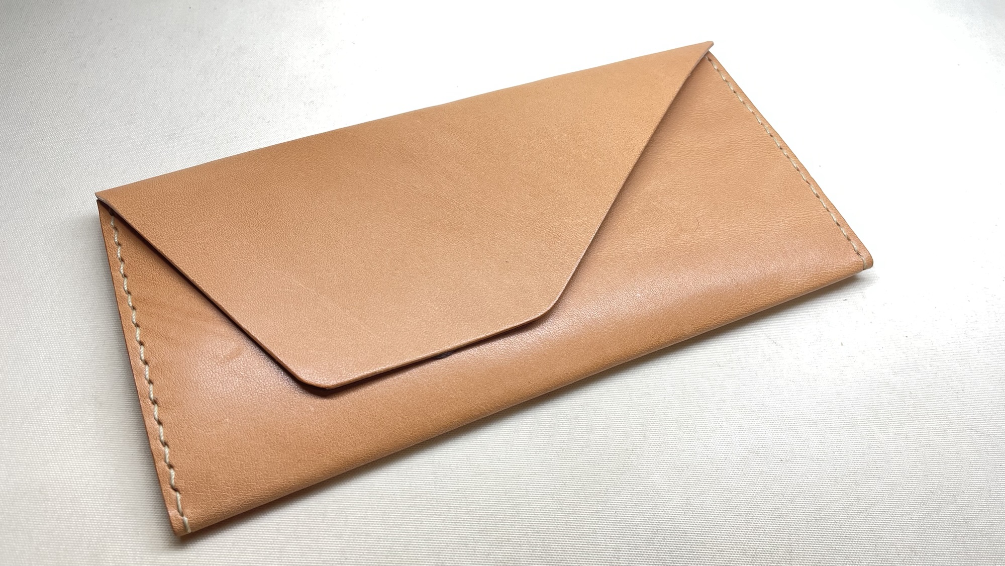 レトロなイメージの長財布です お財布 2024.12.26 江戸、明治、大正、昭和初期の頃のイメージのあるお財布のオーダーを頂きました☺️昔は布でお金を巻いていた感じの巻き財布を彷彿とされる様なデザインをお客様より頂き、ヌメ革にてお作りしました!使い込むと折癖で自然とフタが閉じていきます