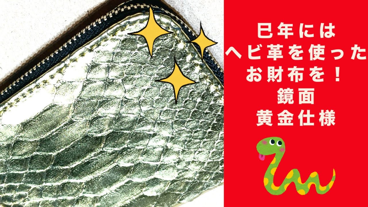 最強財布 巳年には鏡面黄金ヘビ革でL字ファスナーコンパクト財布を作りました