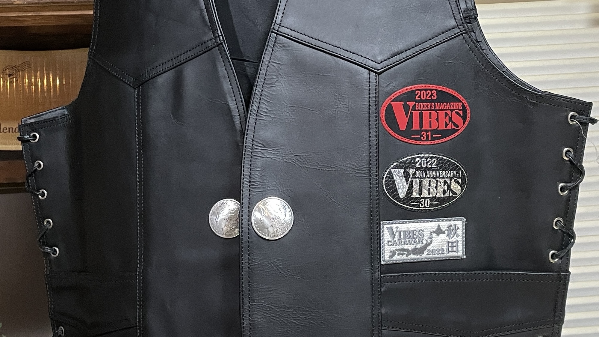 革ベストにワッペン貼り付けのご依頼を頂きました