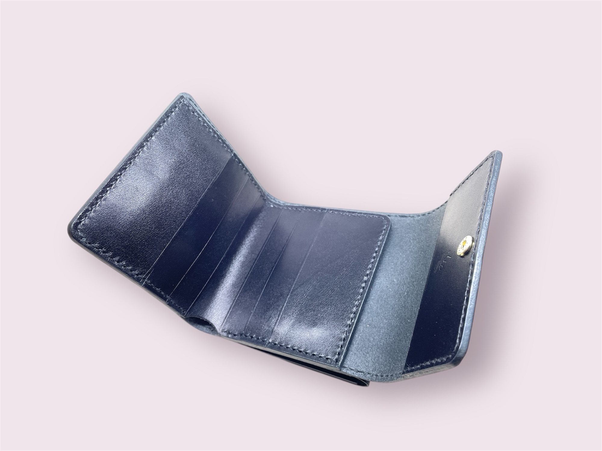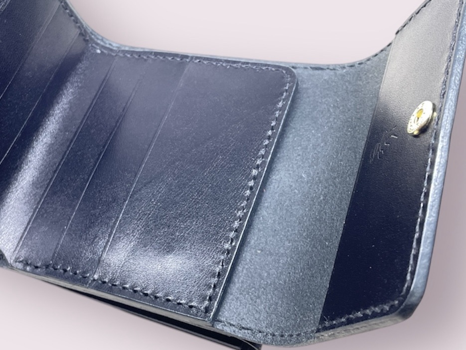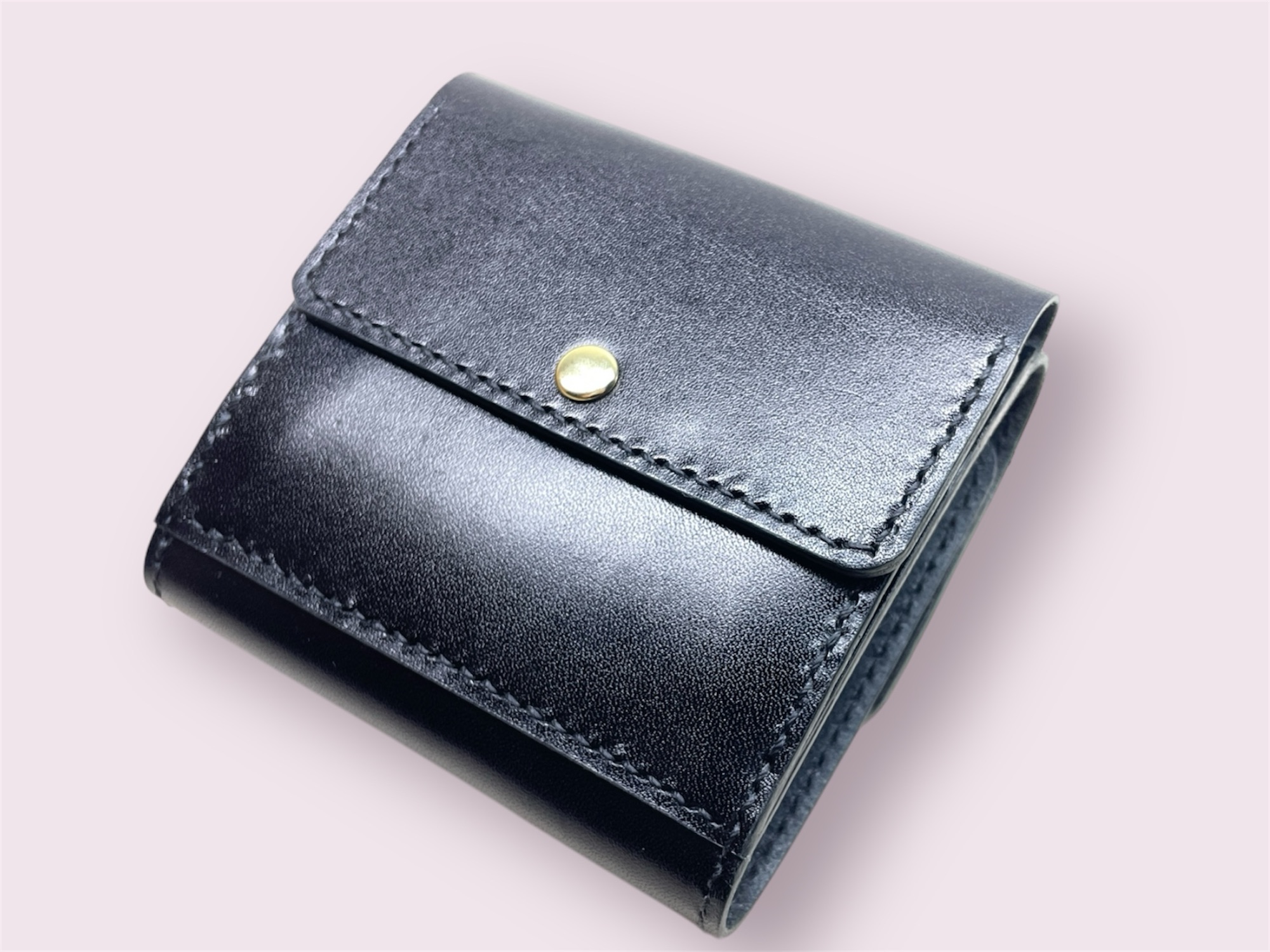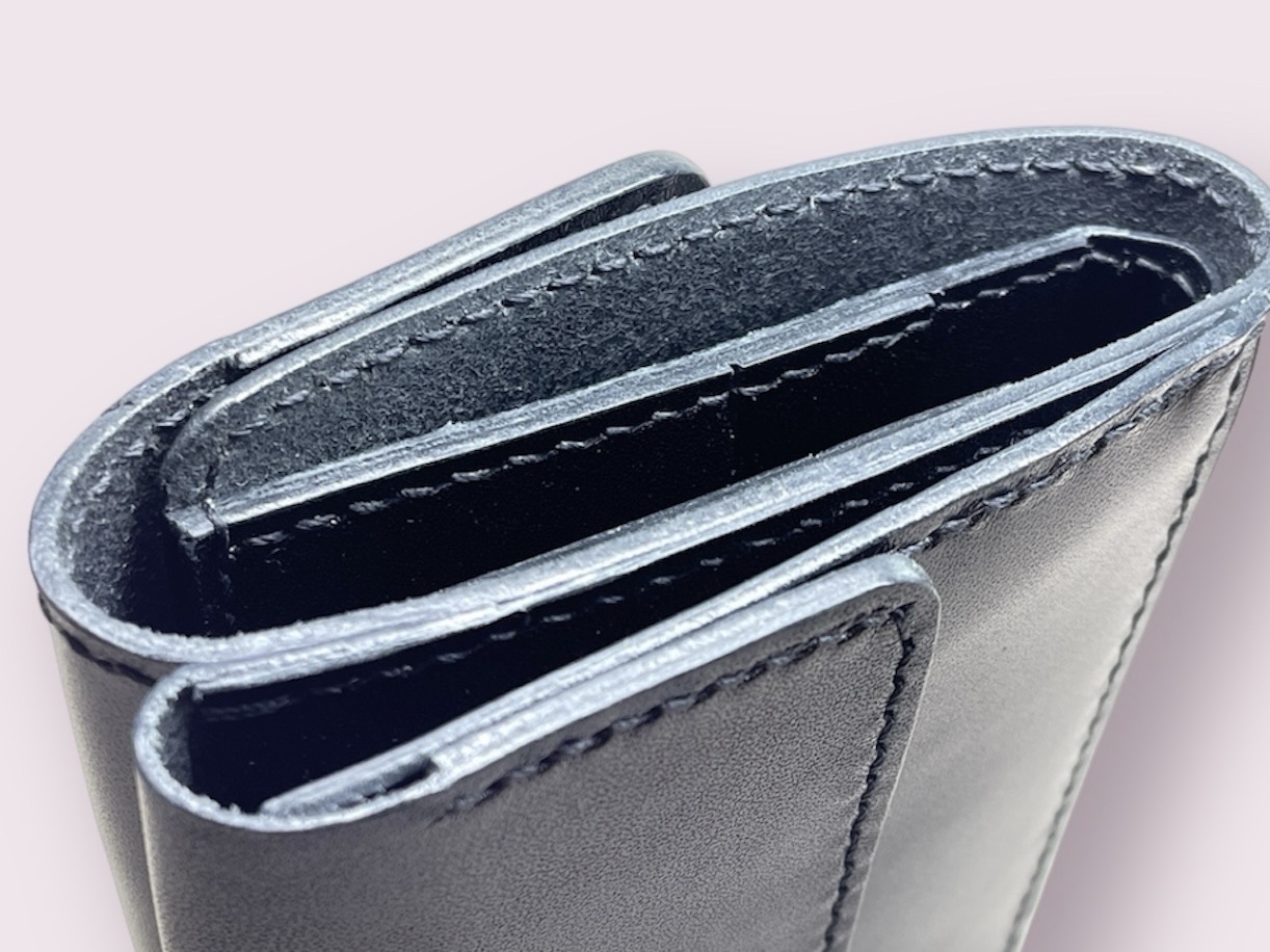 かぶせ付き二つ折り財布 お財布 2025.05.06 かぶせ付き二つ折り(三つ折り)のお財布のご注文を頂きましたカードは横入れ収納、かぶせの反対面に小銭入れをお付けしていますスタンダードな二つ折りのサイズですが、カードポケットが倍になる仕様です!そして小銭を多くいれても折った時にかさばりにくいです
