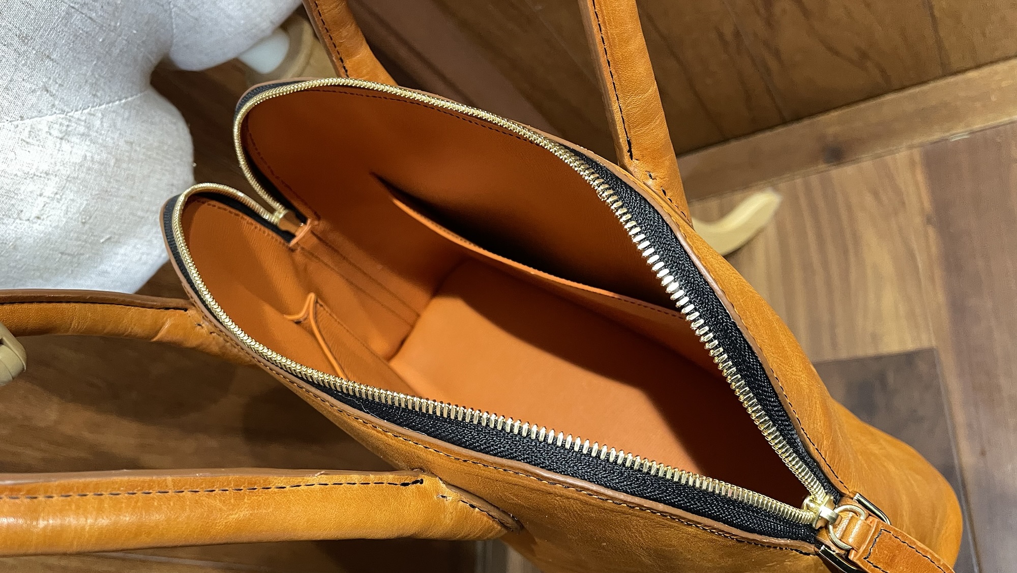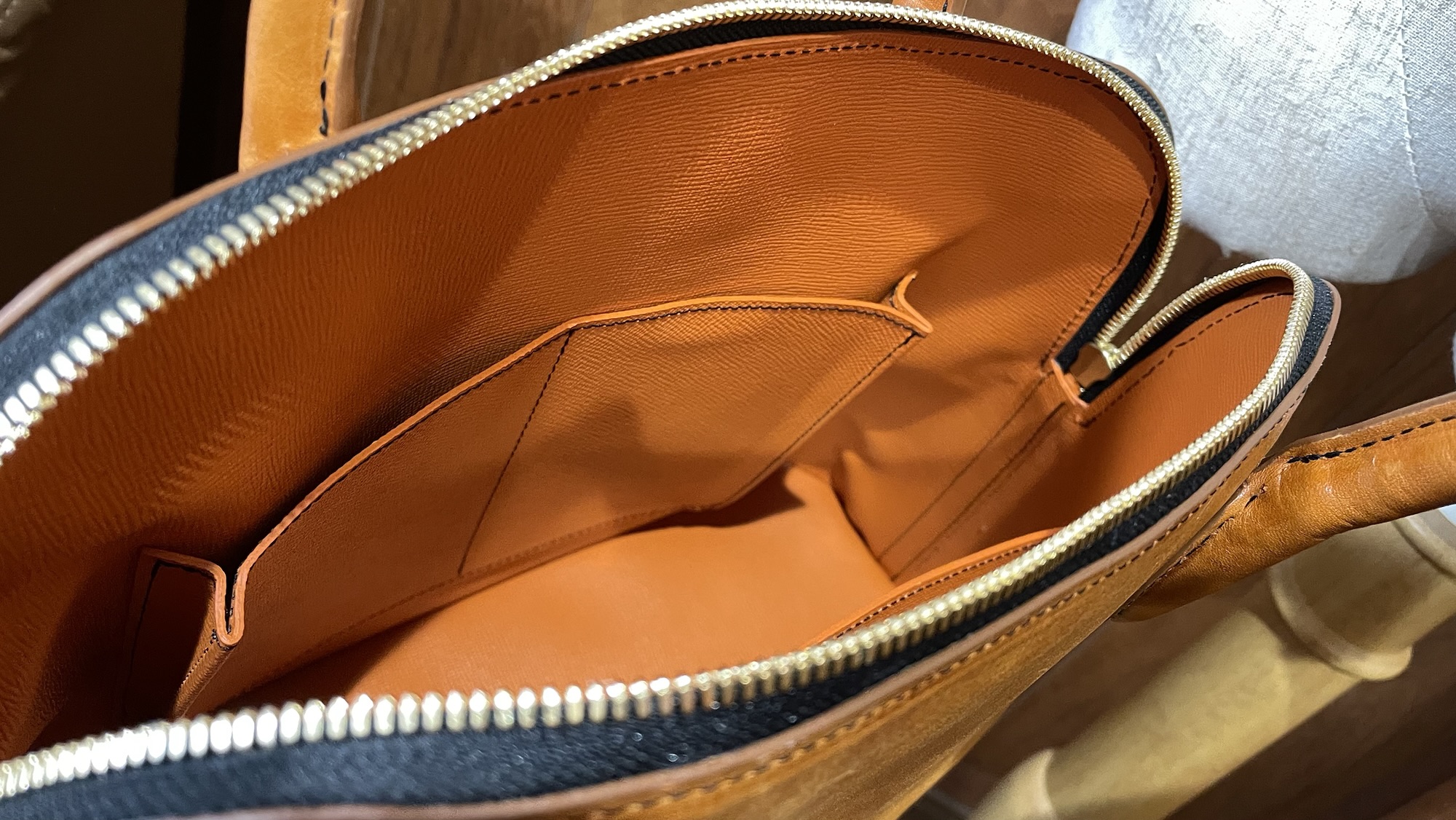 超高級感あふれる定番中の定番のバッグ バッグ/ワーク・シザー 2025.05.13 超高級感あふれる定番中の定番のブガッティ型のバッグのオーダーを頂きました男性用にiPadを横に入れられる程の大きさになっており、型崩れをしない様に芯材や内装の革も硬めの物を選んでおりますバックと持ち手を繋ぐ重要な部分のハンドルも熟練の手間暇かかる丸手仕上げです