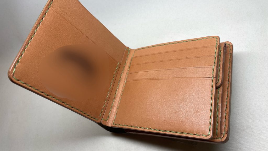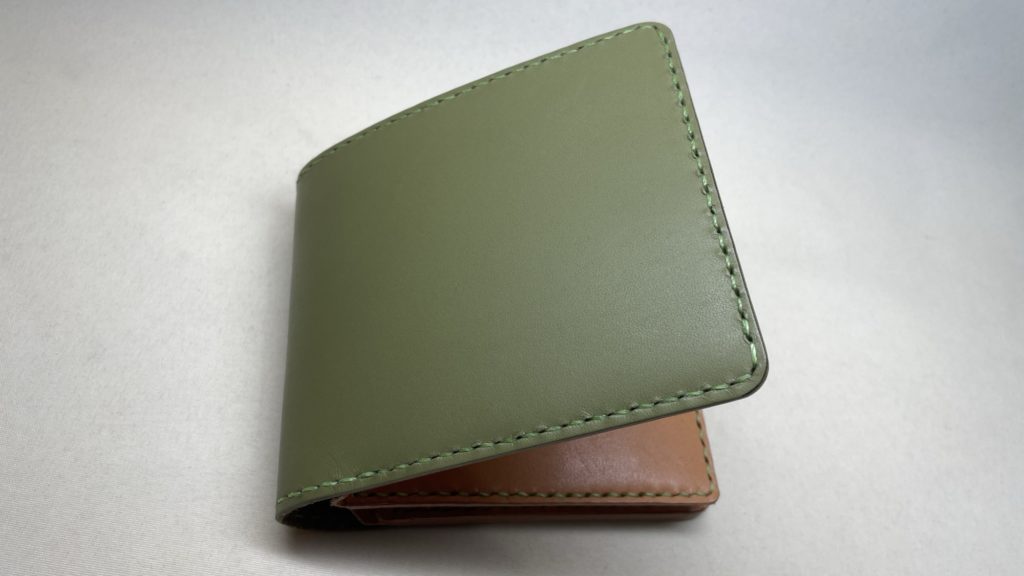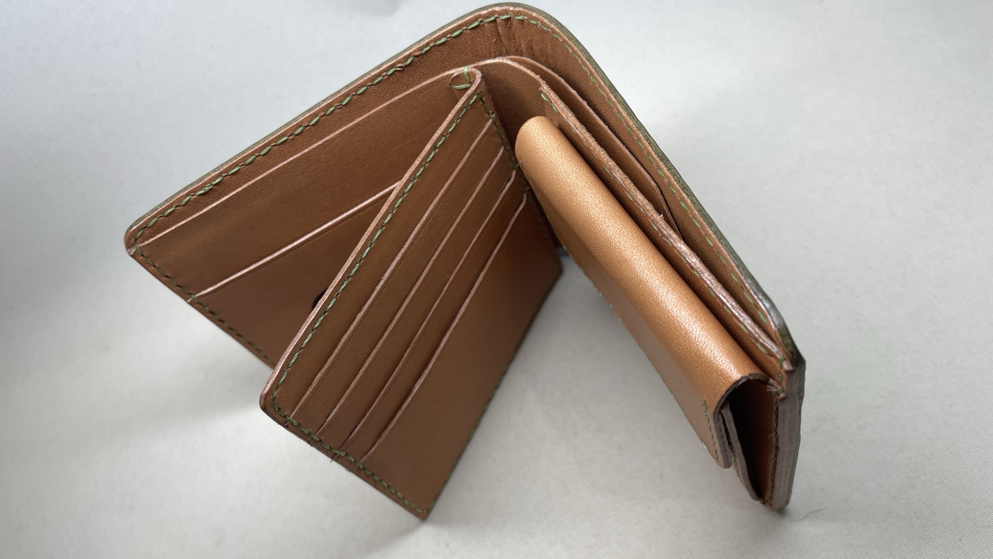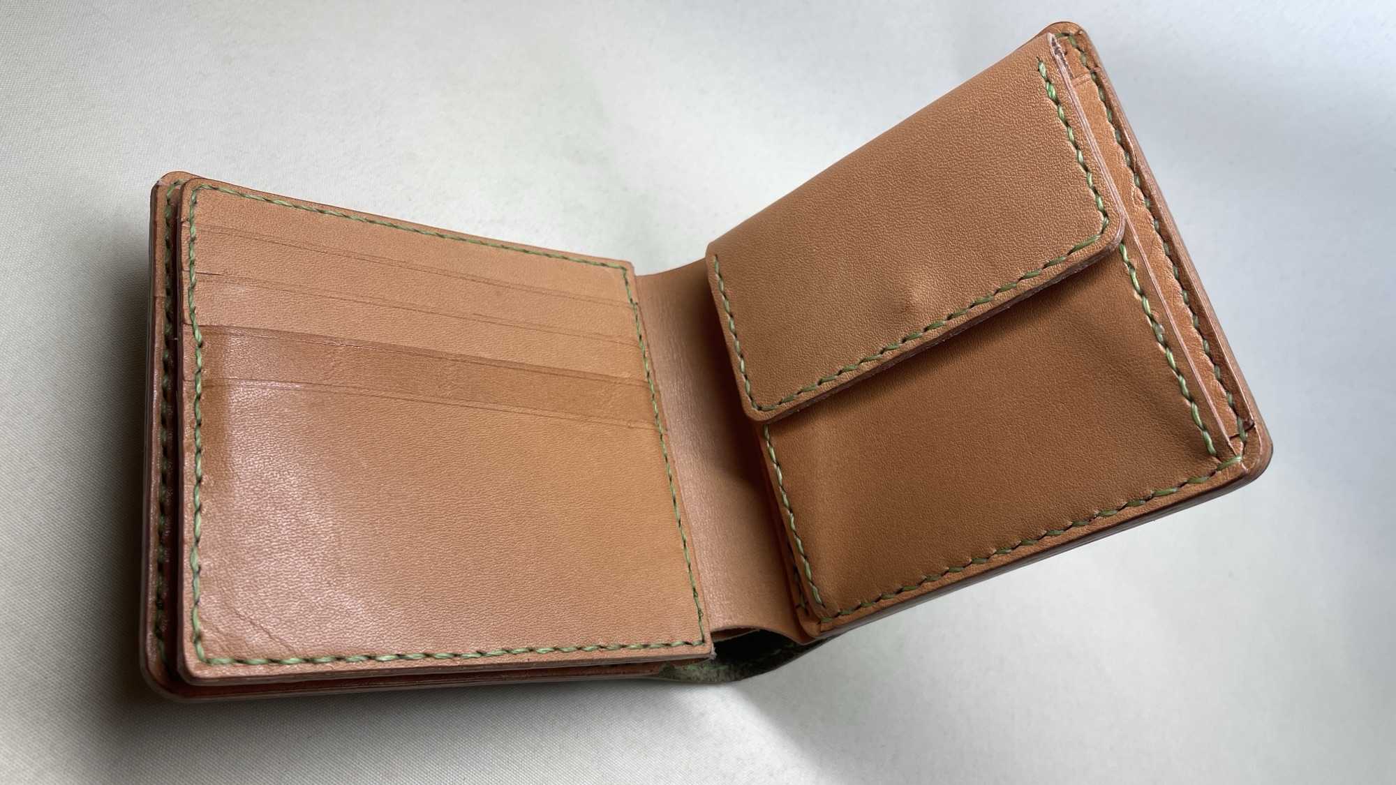 革はお客様の誕生日カラーに近い色をお選び頂きました! お財布 2025.09.15 当店定番の二つ折り財布に、あおりカードポケットをプラス、さらにオリジナルイラストをレーザーでお入れしました!ヌメ革&手縫い仕上げ!オリーブ色の革はお客様の誕生日カラーに近い色をお選び頂きました!ご注文頂きありがとうございました😊