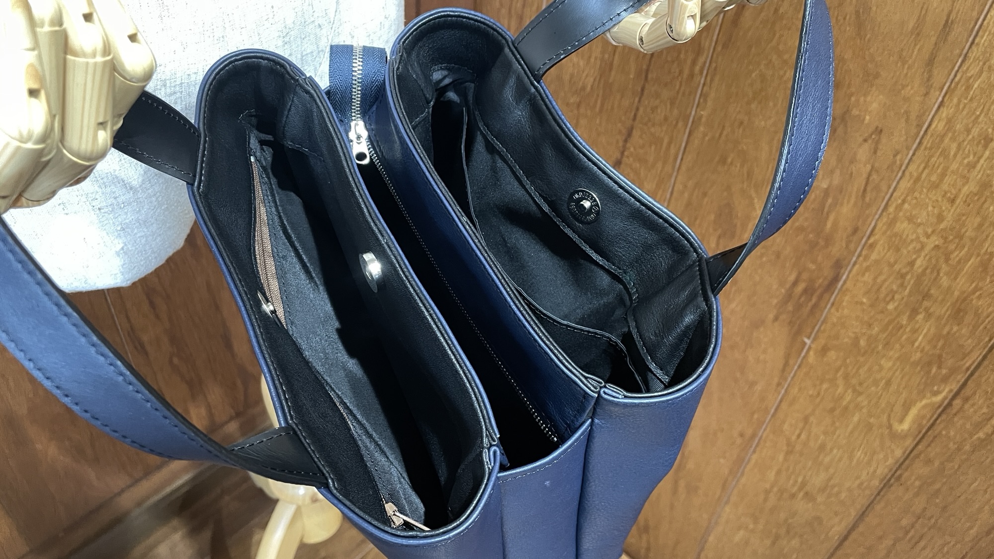 紺色のバッグの方はワインハイマー社のカーフを使用した贅沢な逸品です
