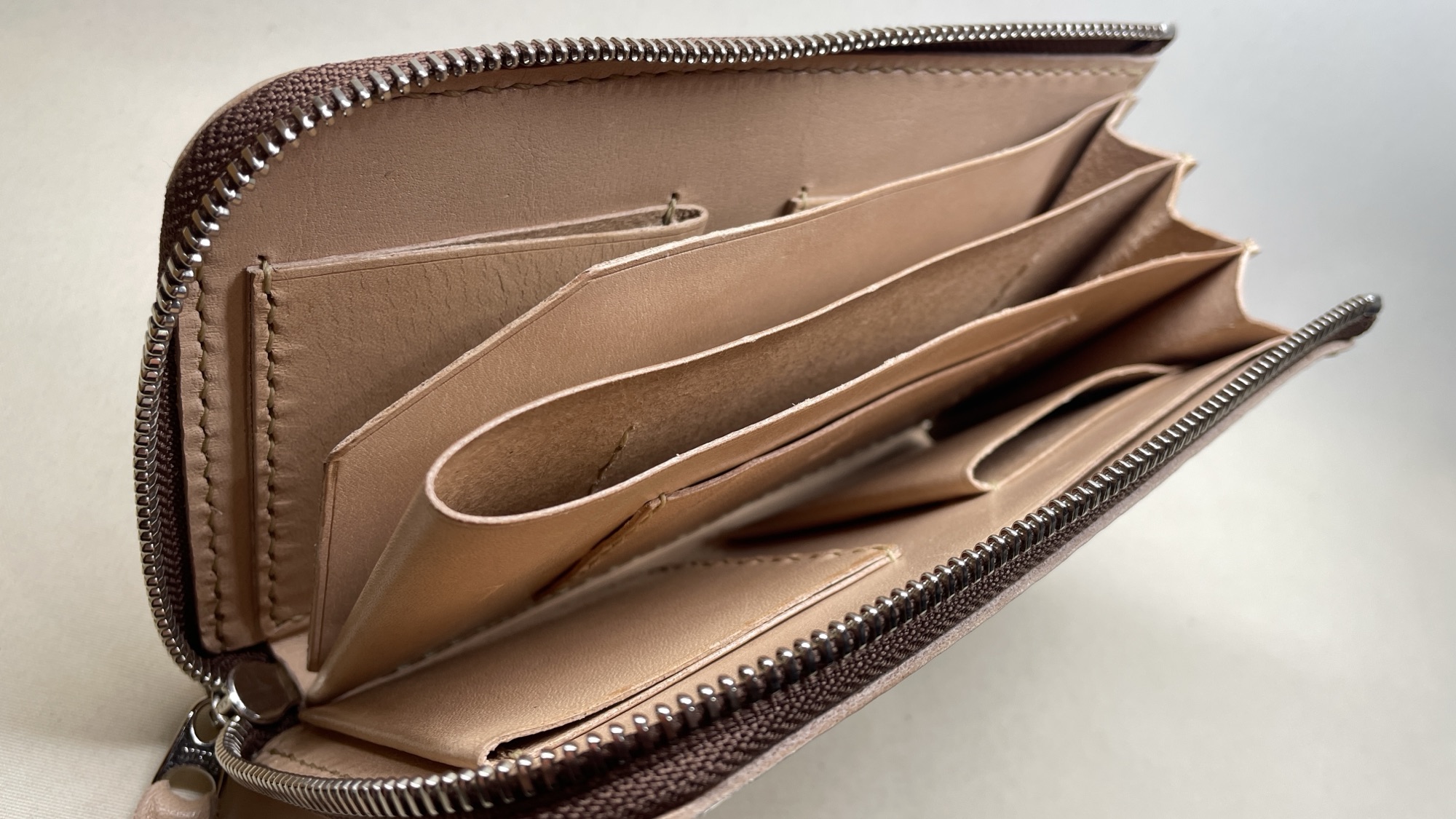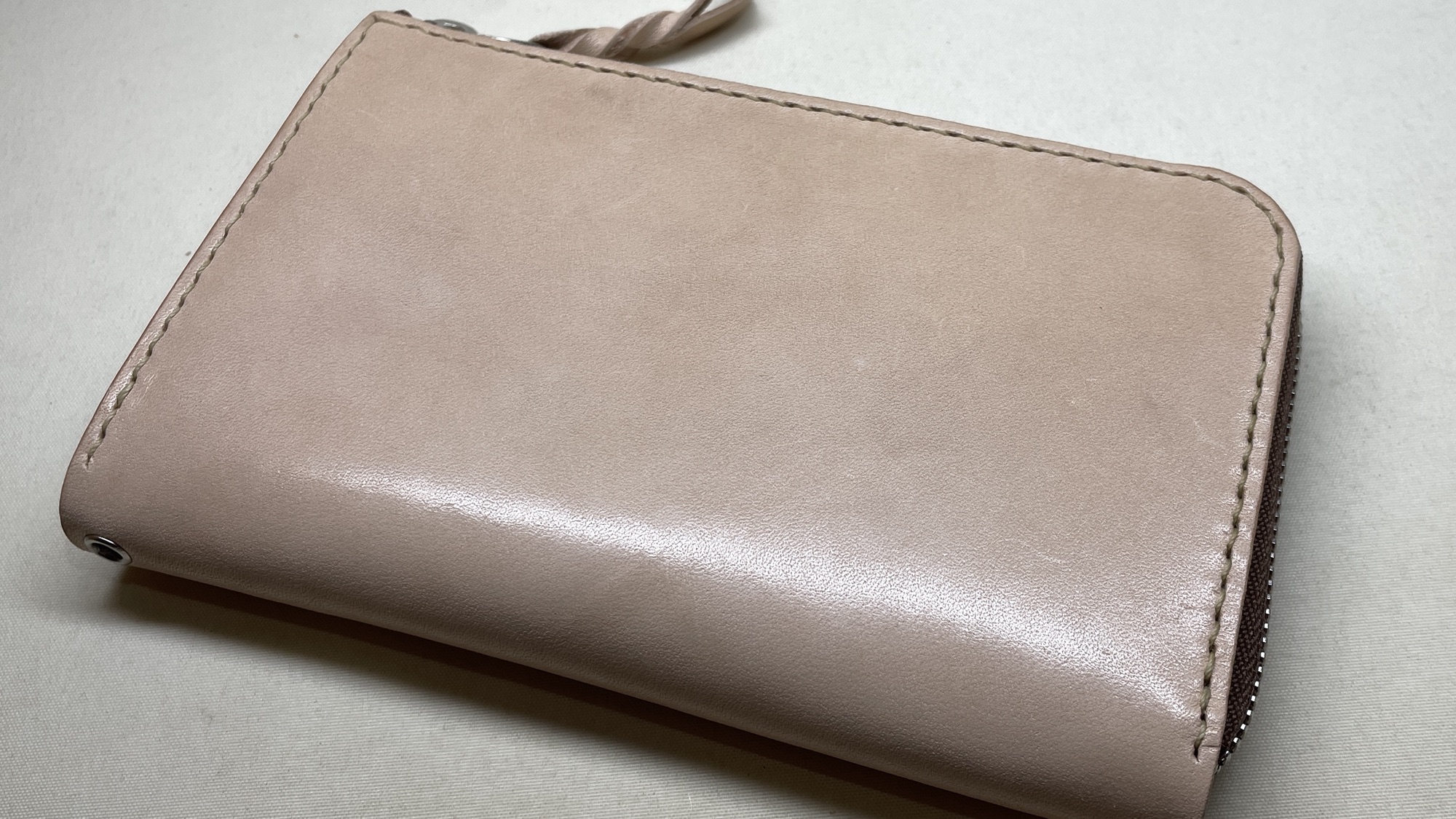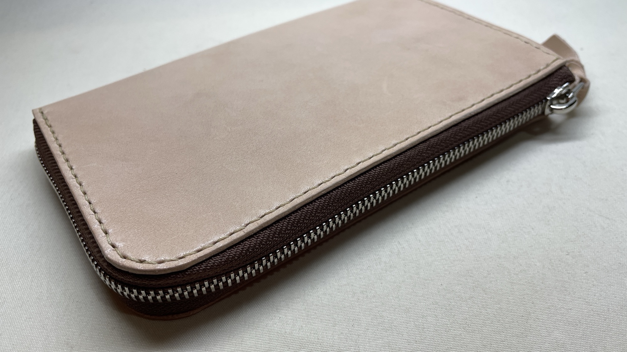 ナチュラル色ヌメ革のL字ファスナーミディアム財布です