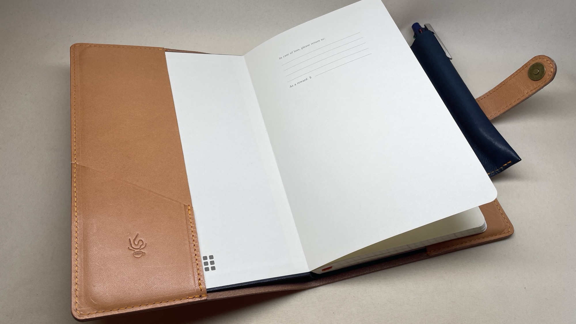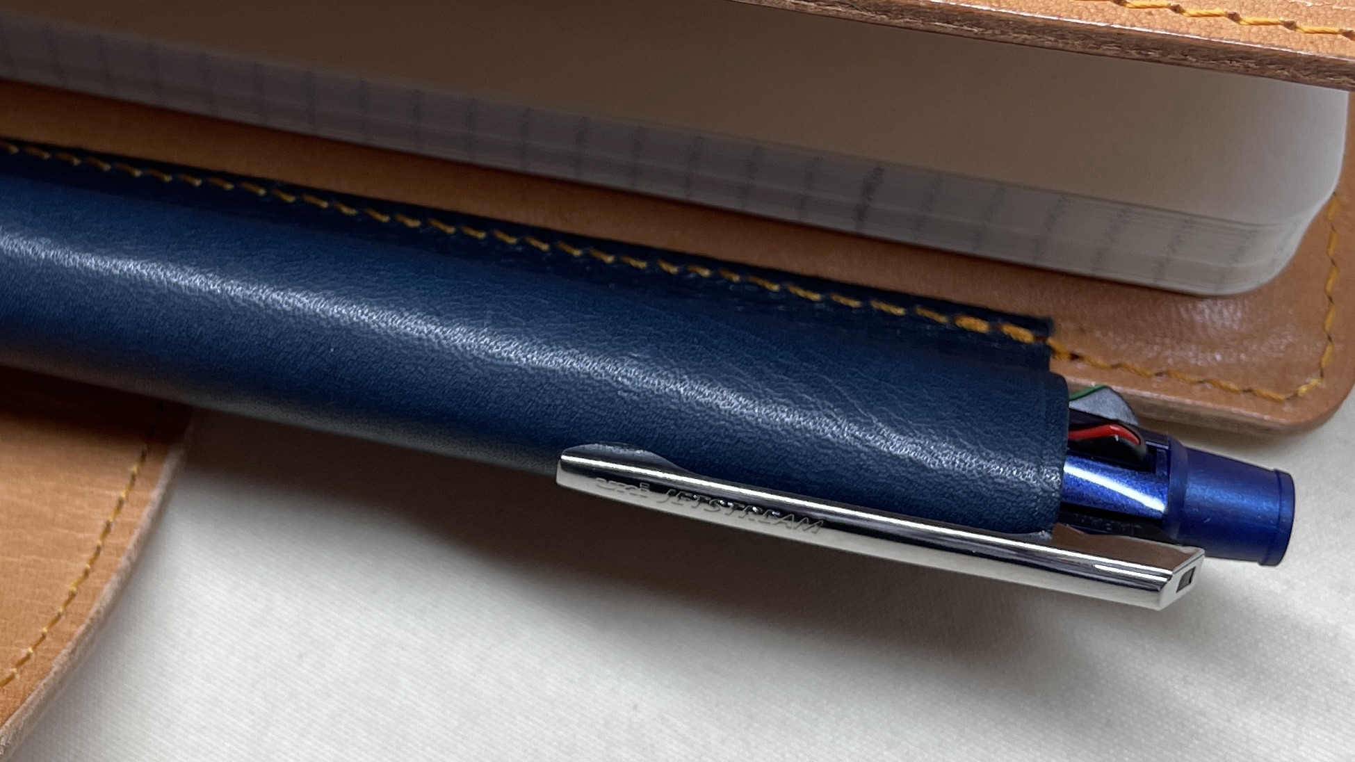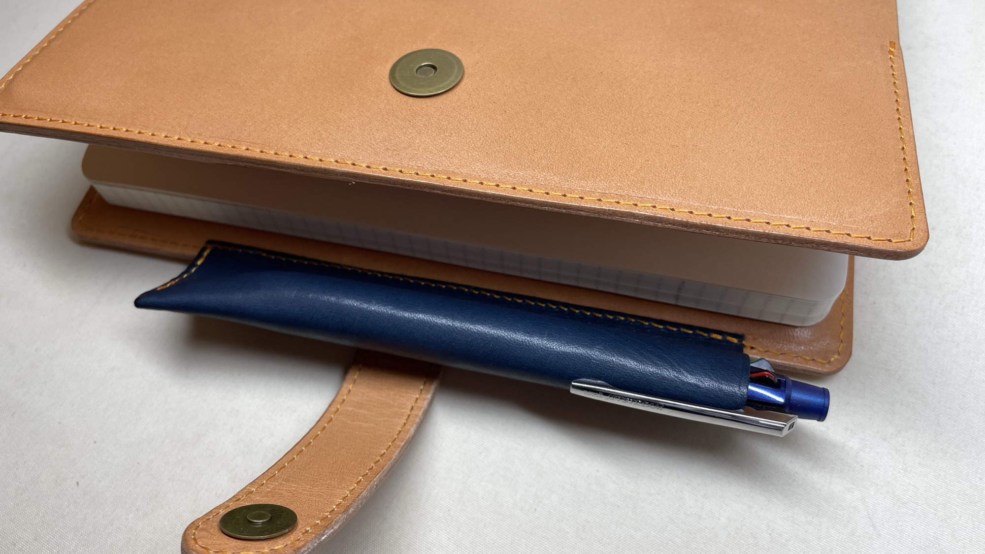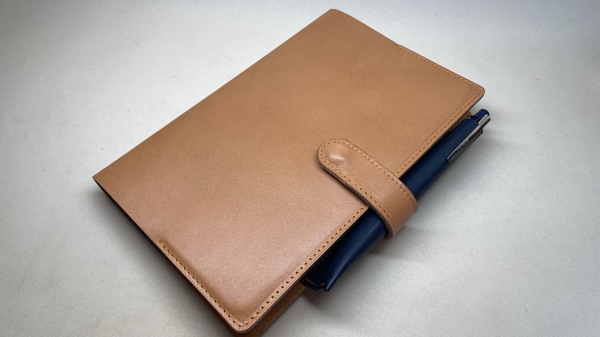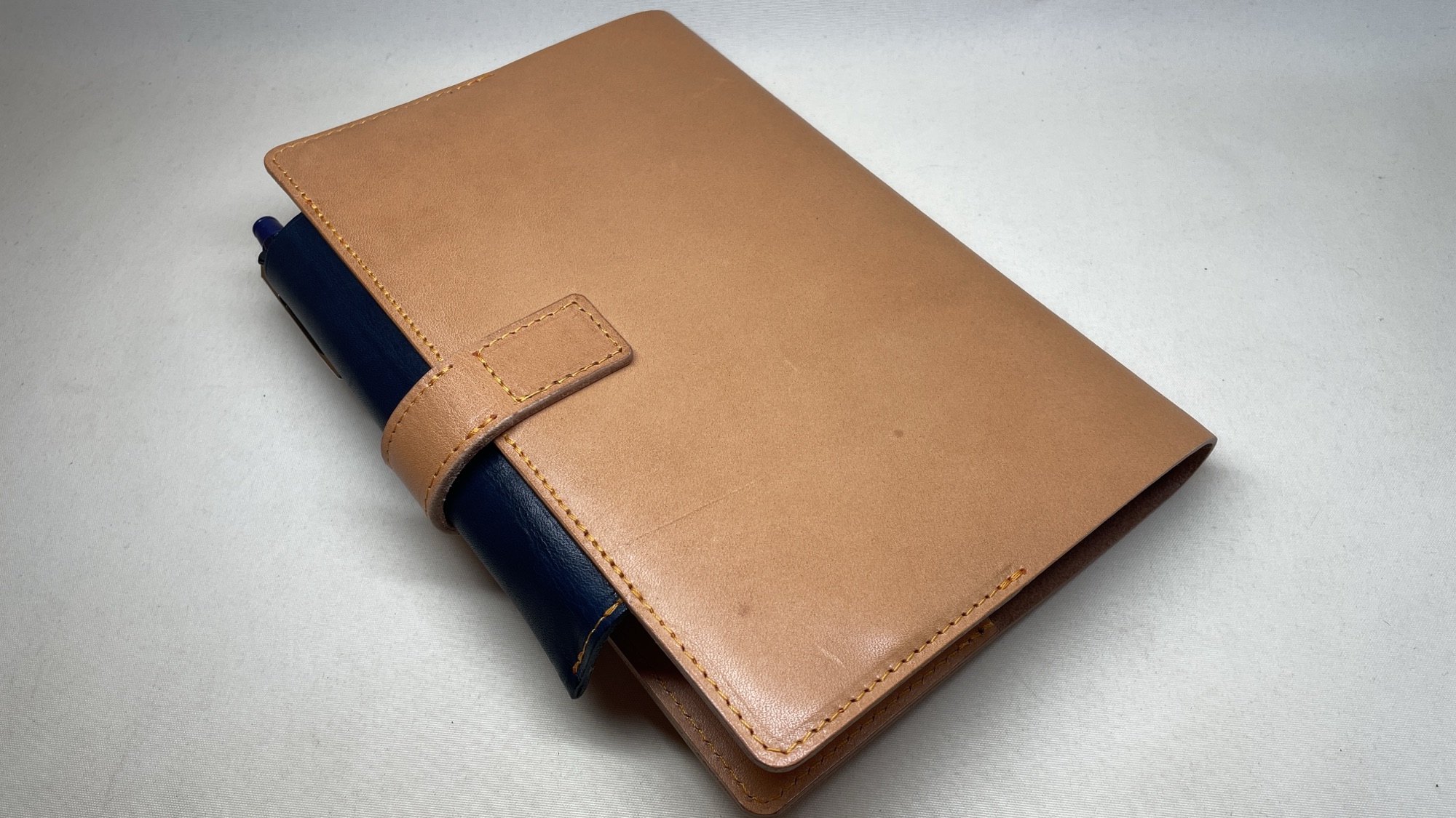 ノートカバーのオーダーメイド ステイショナリー/手帳 2026.03.04 ヌメ革の凛とした表情と、ネイビ 一の別色で仕立てた「袋状のペンホルダー」が非常に印象的なノートカバーです 理想のカバーが見つからない」と嘆く時間は、もう終わりオーダーメイドを選ぶ人は、自分のスタイルを誰よりも熟知している人です