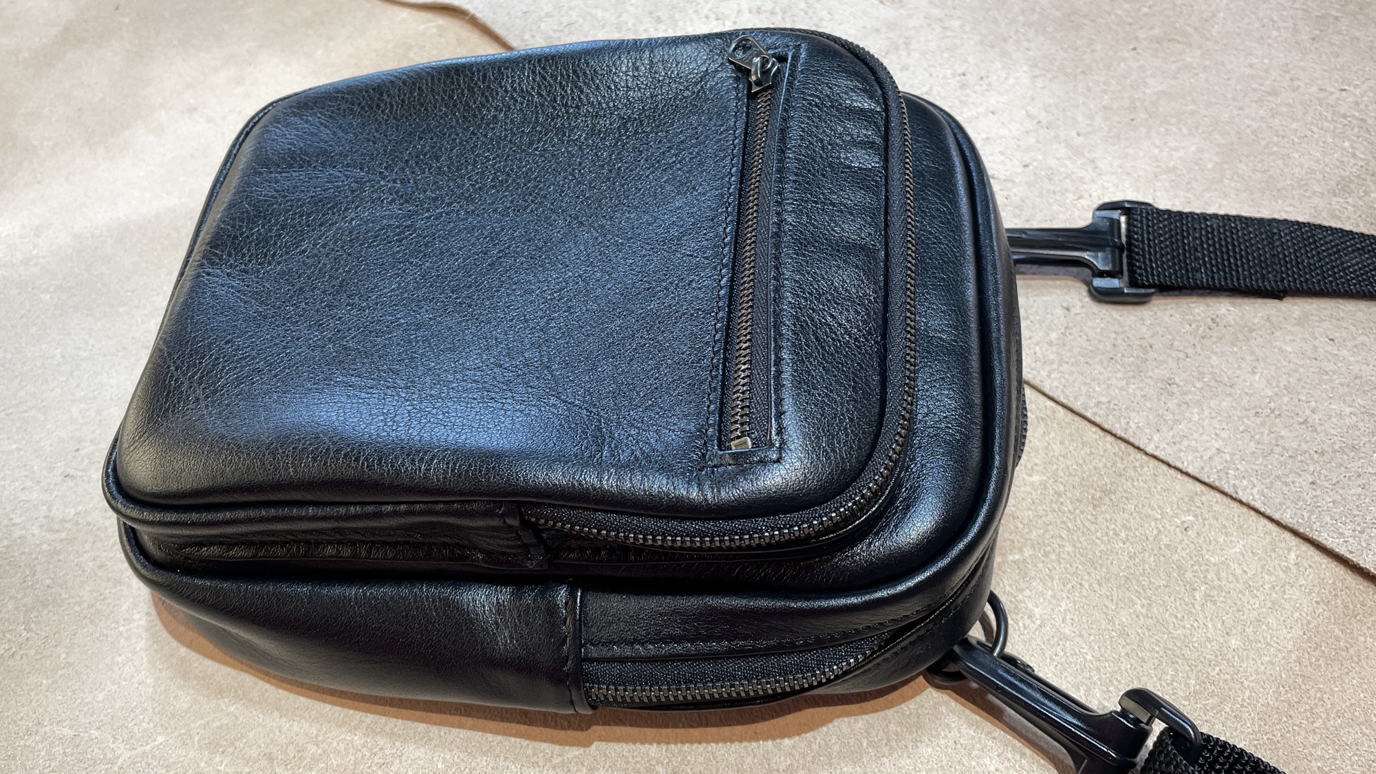 ショルダーバッグのオーダーメイドです バッグ/ワーク・シザー 2026.03.25 しっとりとオイルを感じる柔らかめのクローム革で仕立てたバッグ 持った瞬間にわかる、この手馴染み方しなやかさで使うショルダーバッグ ファスナーポケットも使いやすいスタンダードな配置です 経年変化より使いやすさ重視の革のショルダーバッグです