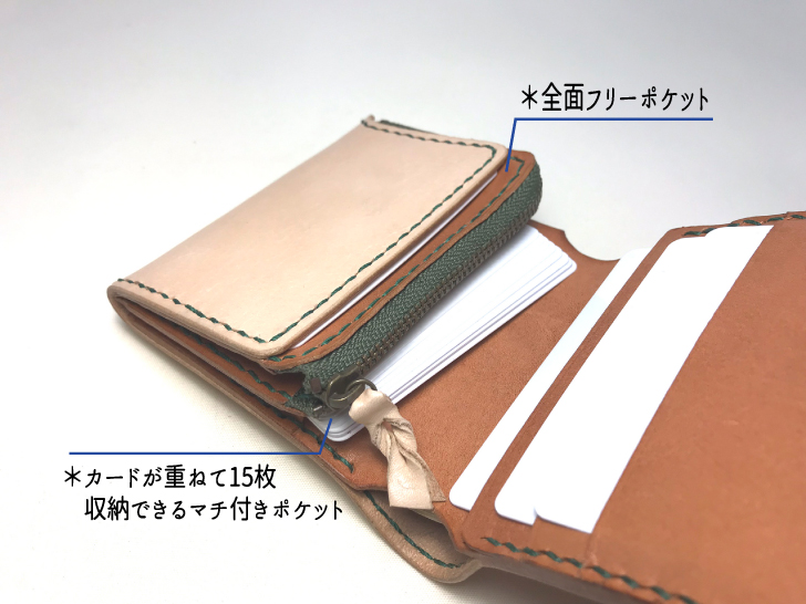 税込 24,700円 サイズ:10.5cm×10cm エレメントに入念な磨きをかけた滑らかなYKK高級ファスナーEXCELLAを使用しております 皮革とステッチの色はこちらより選択できます。(例えば「カードポケットの一部だけを赤色に」など、組み合わせは自由にご指定頂けます。) ネーム入れ、装飾などのオプションを組み合わせる事もできます。 デザインや仕様の一部を自由にオーダー変更もできます。お気軽にお申し付けください。