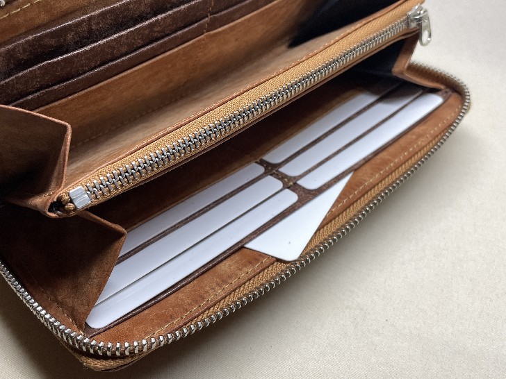 税込 35,900円 サイズ:19cm×10cm エレメントに入念な磨きをかけたYKK高級ファスナーEXCELLAを使用しております 皮革とステッチの色はこちらより選択できます。(例えば「カードポケットの一部だけを赤色に」など、組み合わせは自由にご指定頂けます。) ネーム入れ、装飾などのオプションを組み合わせる事もできます。 デザインや仕様の一部を自由にオーダー変更もできます。お気軽にお申し付けください。