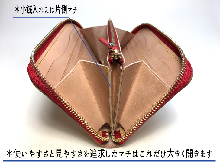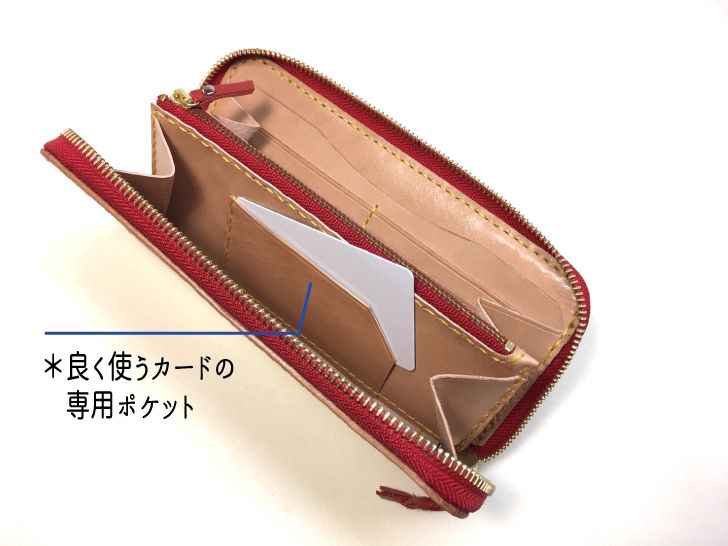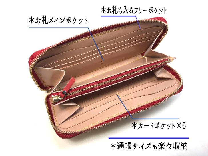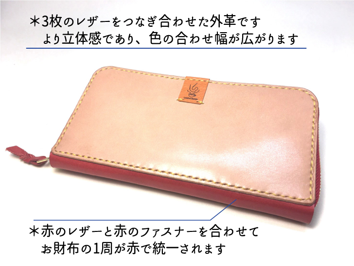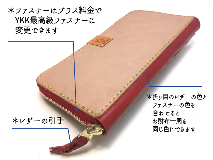 税込 36,900円 サイズ:19cm×10cm エレメントに入念な磨きをかけた滑らかなYKK高級ファスナーEXCELLAを使用しております 皮革とステッチの色はこちらより選択できます。(例えば「カードポケットの一部だけを赤色に」など、組み合わせは自由にご指定頂けます。) ネーム入れ、装飾などのオプションを組み合わせる事もできます。 デザインや仕様の一部を自由にオーダー変更もできます。お気軽にお申し付けください。