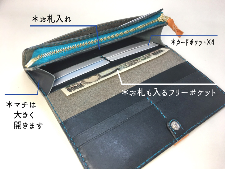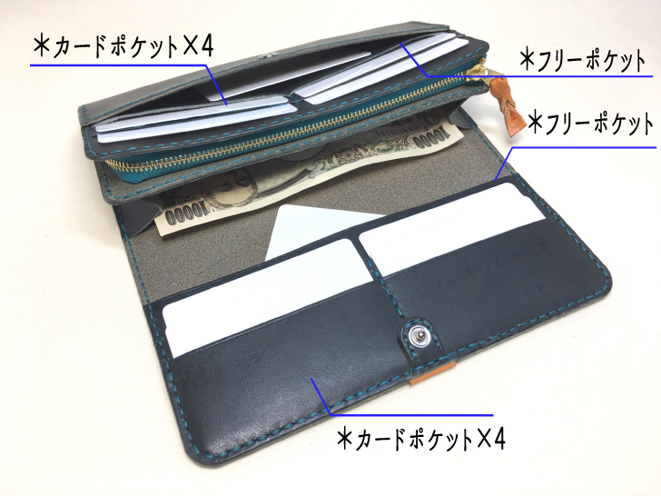 税込 39,900円 サイズ:19cm×10.5cm エレメントに入念な磨きをかけた滑らかなYKK高級ファスナーEXCELLAを使用しております 皮革とステッチの色はこちらより選択できます。(例えば「カードポケットの一部だけを赤色に」など、組み合わせは自由にご指定頂けます。) ネーム入れ、装飾などのオプションを組み合わせる事もできます。 デザインや仕様の一部を自由にオーダー変更もできます。お気軽にお申し付けください。