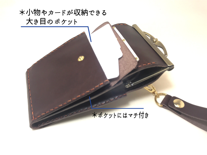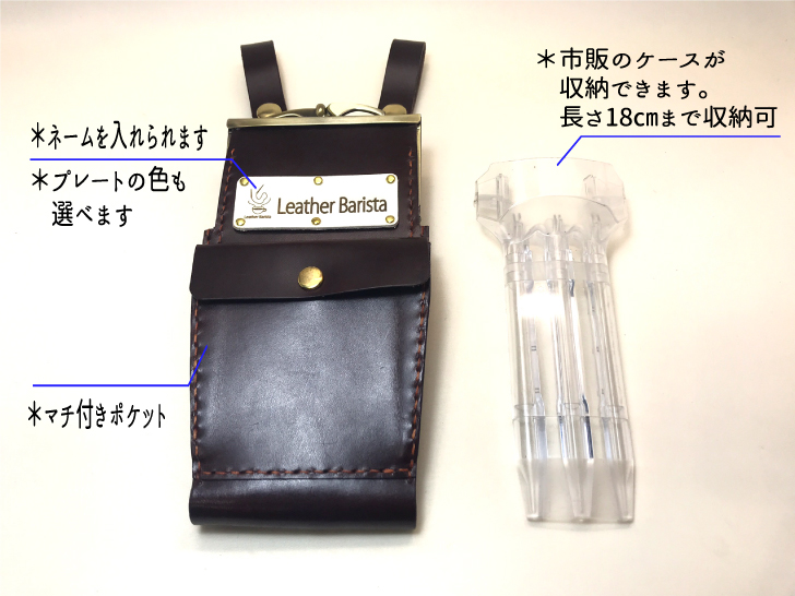 税込 30,900円 サイズ:20cm×11.5cm 手縫いとミシン縫いで仕上げます 皮革とステッチの色はこちらより選択できます。(例えば「カードポケットの一部だけを赤色に」など、組み合わせは自由にご指定頂けます。) ネーム入れ、装飾などのオプションを組み合わせる事もできます。 デザインや仕様の一部を自由にオーダー変更もできます。お気軽にお申し付けください。